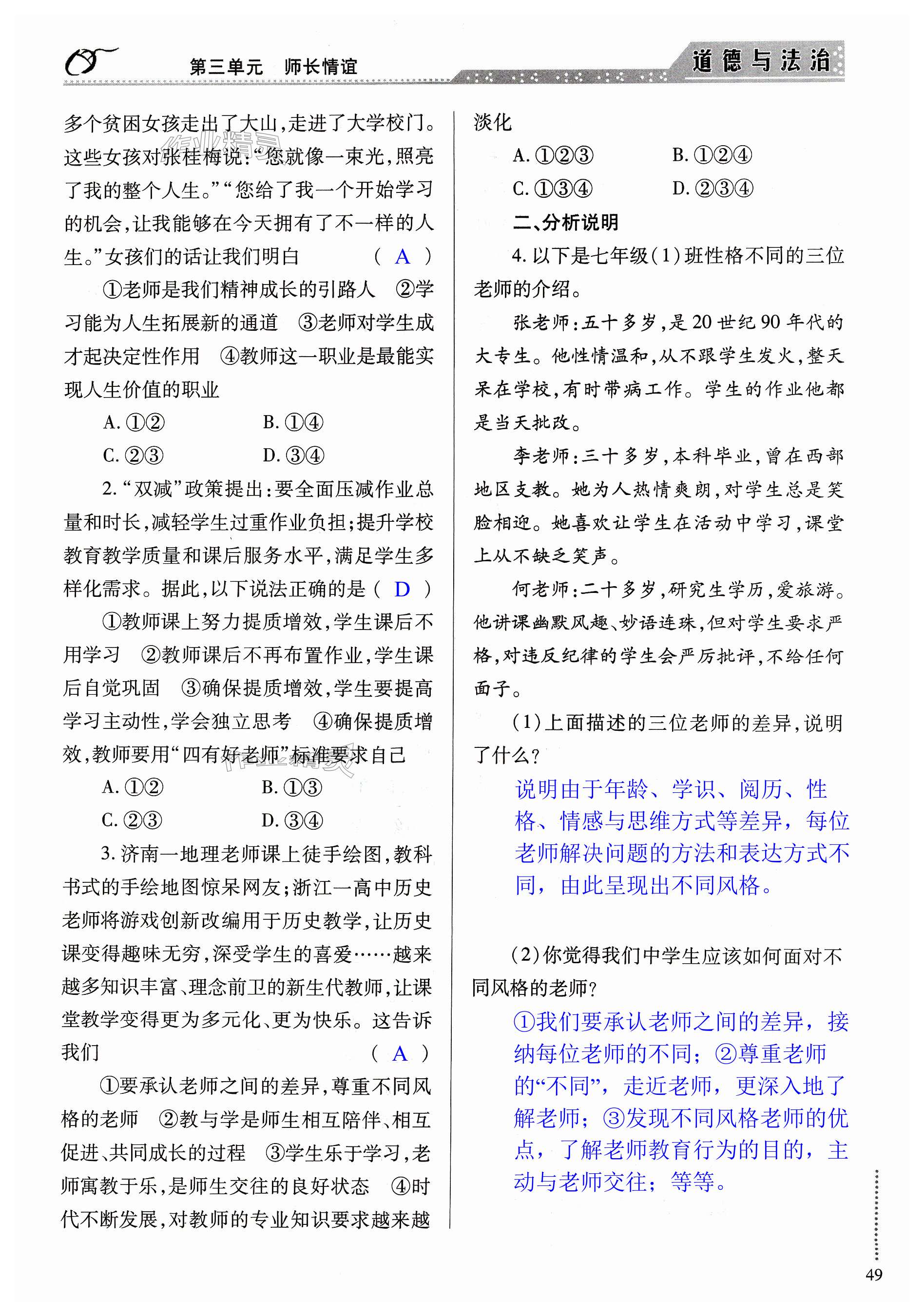 注:目前有些书本章节名称可能整理的还不是很完善,但都是按照顺序排列的,请同学们按照顺序仔细查找。练习册 2023年智慧学习导学练七年级道德与法治上册人教版 答案主要是用来给同学们做完题方便对答案用的,请勿直接抄袭。