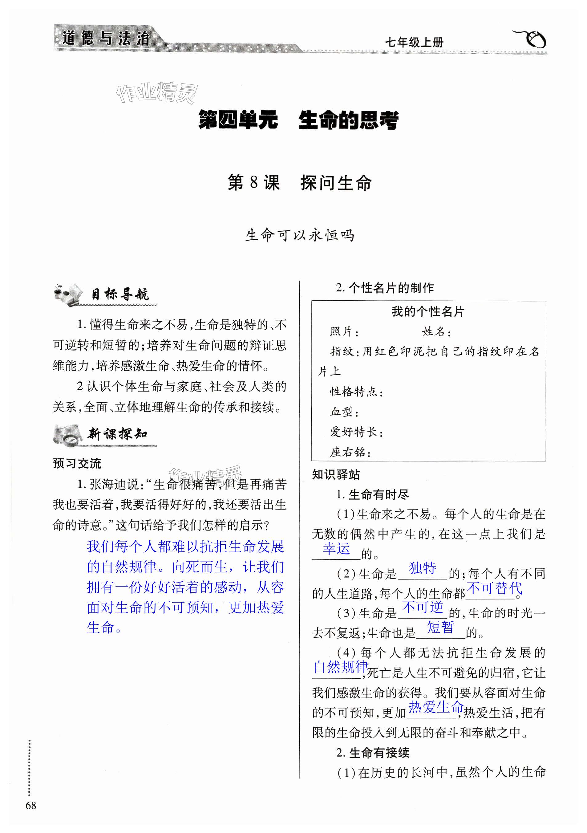 注:目前有些书本章节名称可能整理的还不是很完善,但都是按照顺序排列的,请同学们按照顺序仔细查找。练习册 2023年智慧学习导学练七年级道德与法治上册人教版 答案主要是用来给同学们做完题方便对答案用的,请勿直接抄袭。