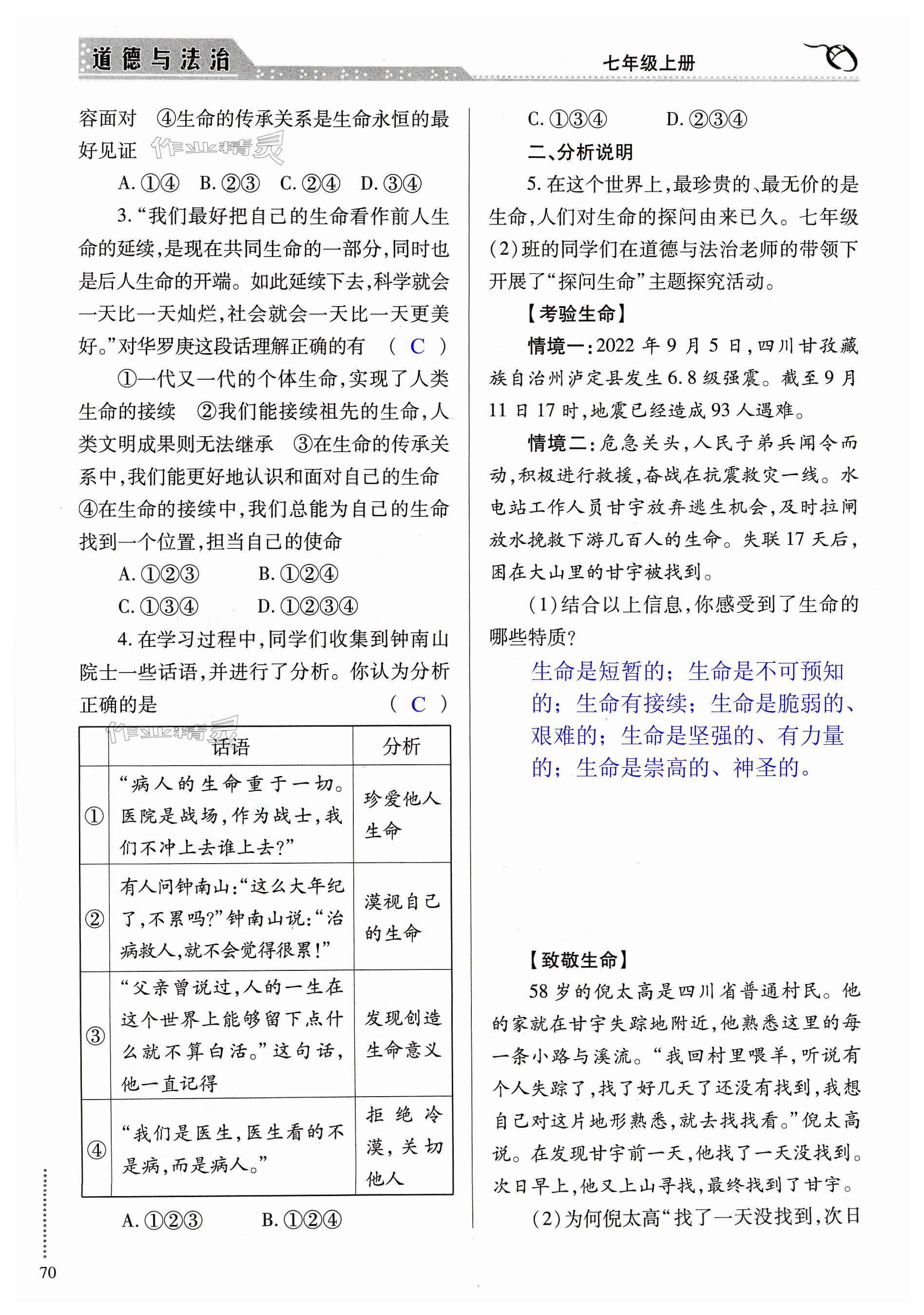 注:目前有些书本章节名称可能整理的还不是很完善,但都是按照顺序排列的,请同学们按照顺序仔细查找。练习册 2023年智慧学习导学练七年级道德与法治上册人教版 答案主要是用来给同学们做完题方便对答案用的,请勿直接抄袭。