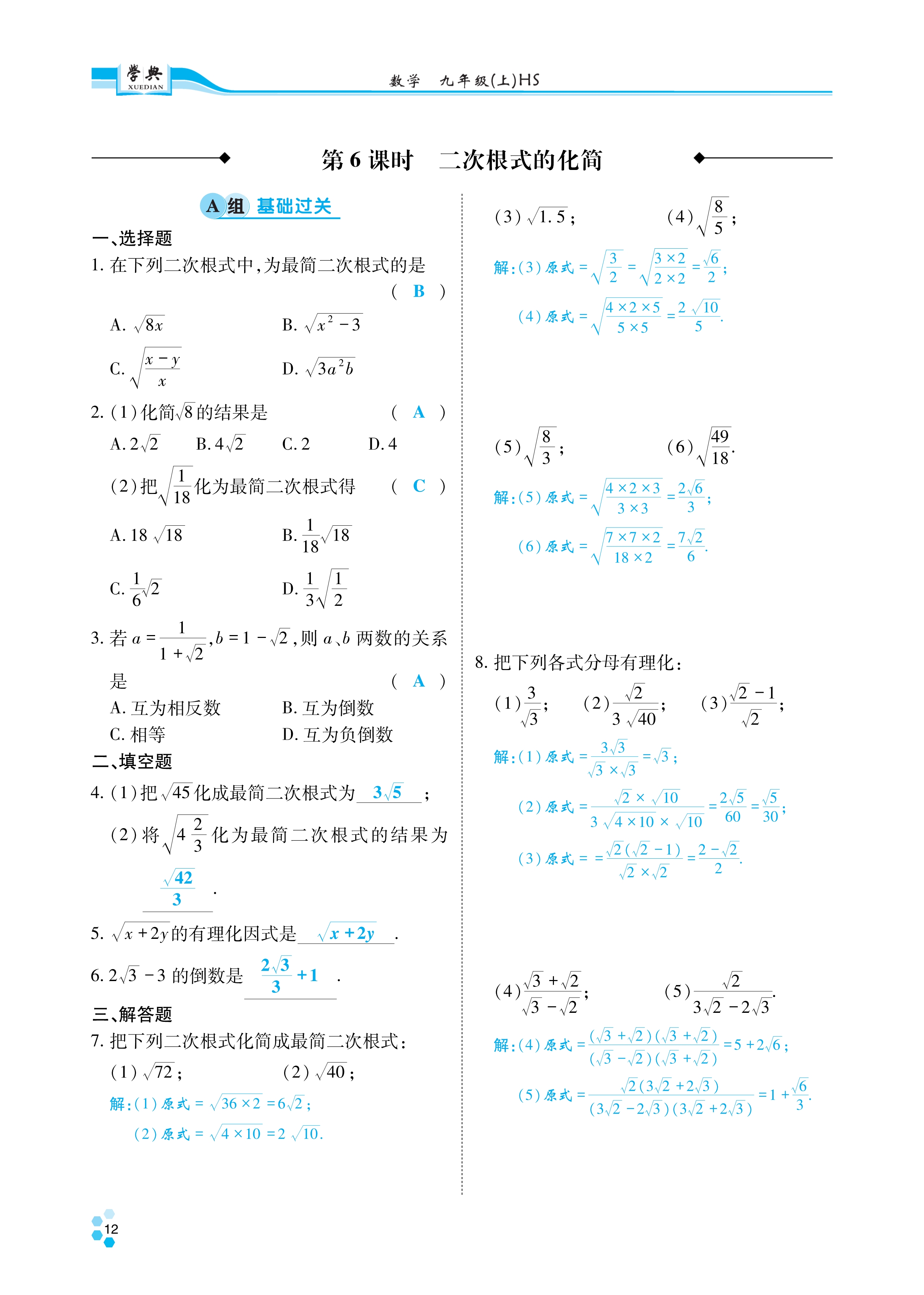注:目前有些书本章节名称可能整理的还不是很完善,但都是按照顺序排列的,请同学们按照顺序仔细查找。练习册 2023年学典四川九年级数学全一册华师大版 答案主要是用来给同学们做完题方便对答案用的,请勿直接抄袭。
