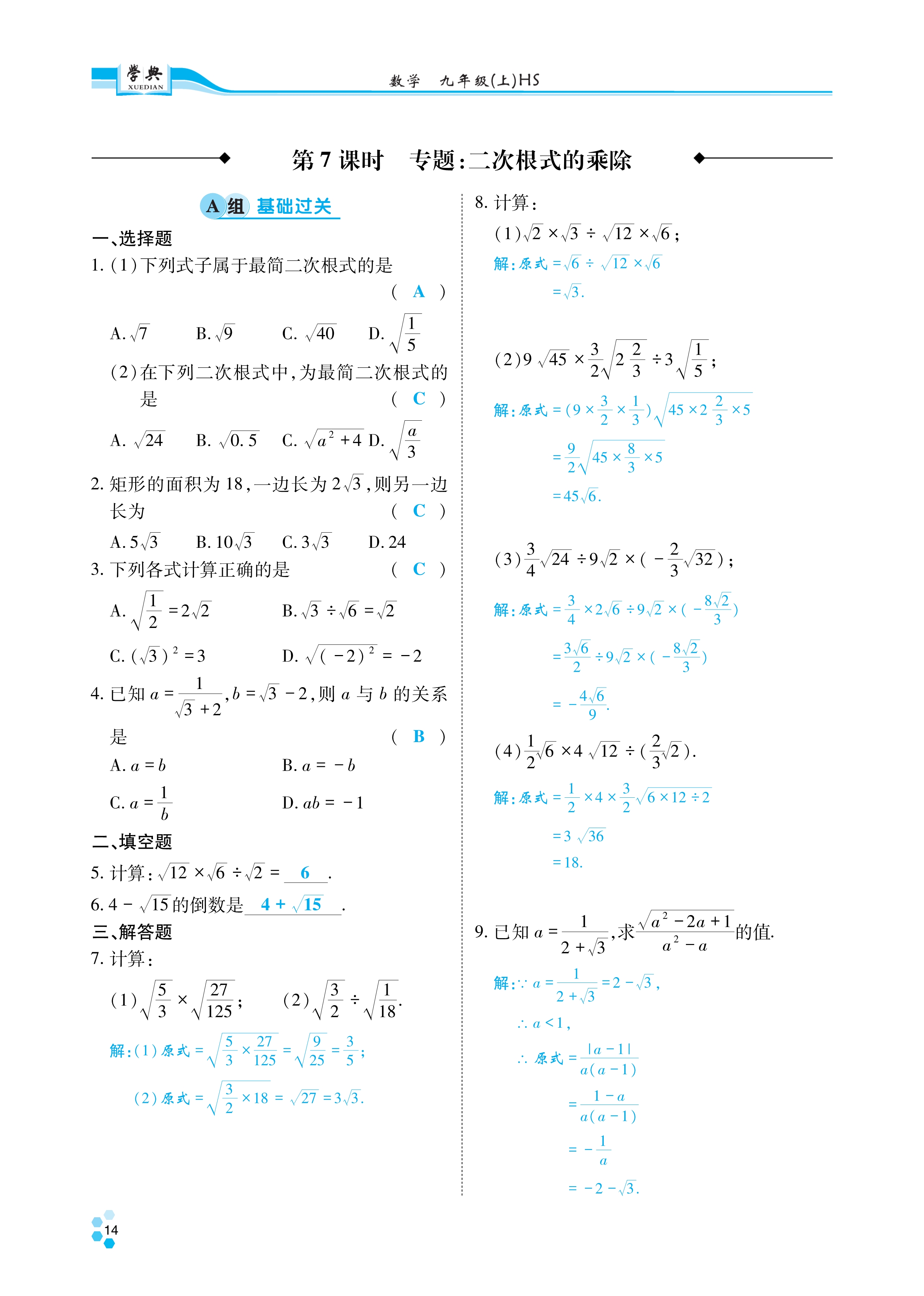 注:目前有些书本章节名称可能整理的还不是很完善,但都是按照顺序排列的,请同学们按照顺序仔细查找。练习册 2023年学典四川九年级数学全一册华师大版 答案主要是用来给同学们做完题方便对答案用的,请勿直接抄袭。