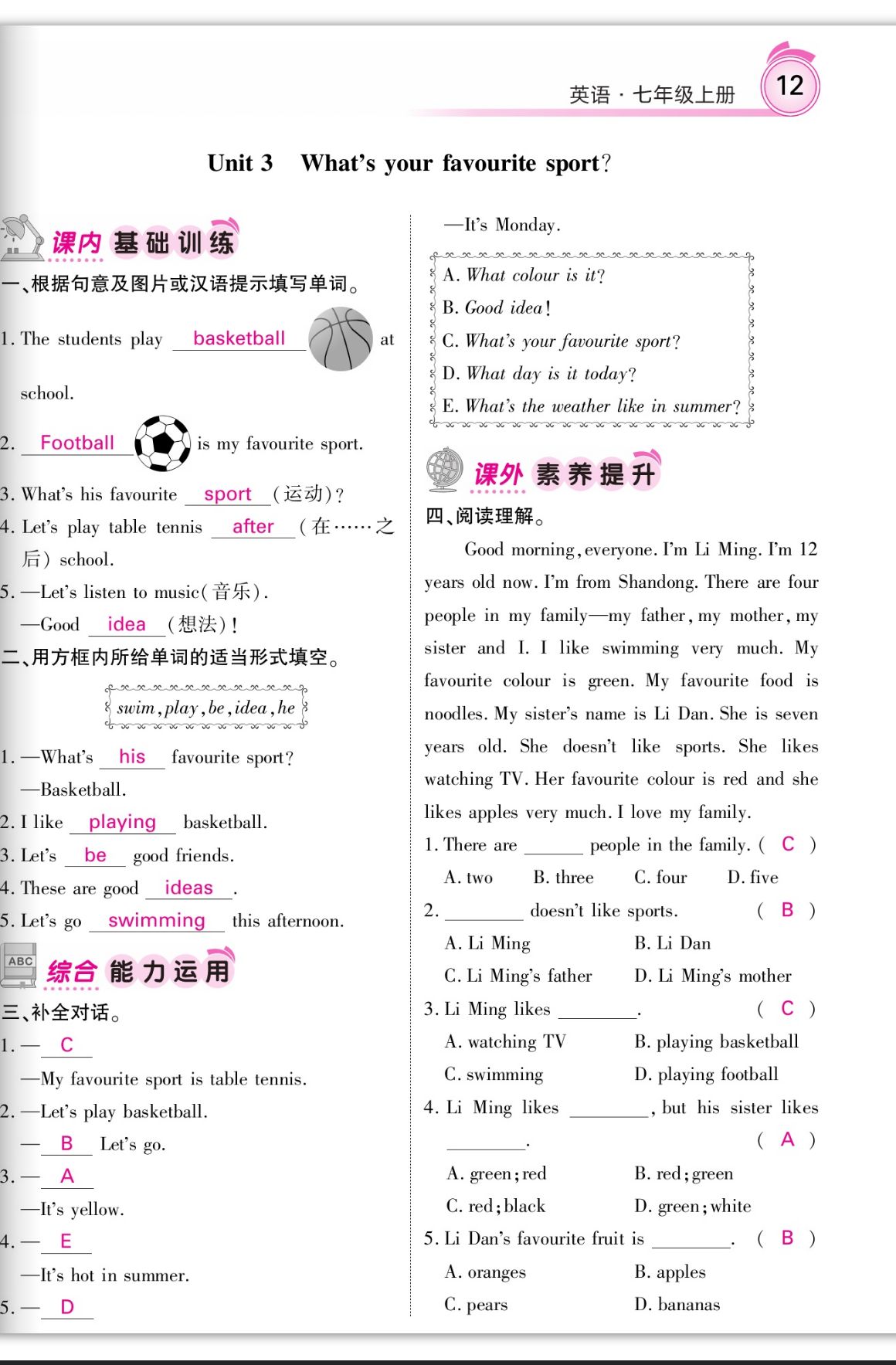 注:目前有些书本章节名称可能整理的还不是很完善,但都是按照顺序排列的,请同学们按照顺序仔细查找。练习册 2023年名校课堂内外七年级英语上册外研版 答案主要是用来给同学们做完题方便对答案用的,请勿直接抄袭。