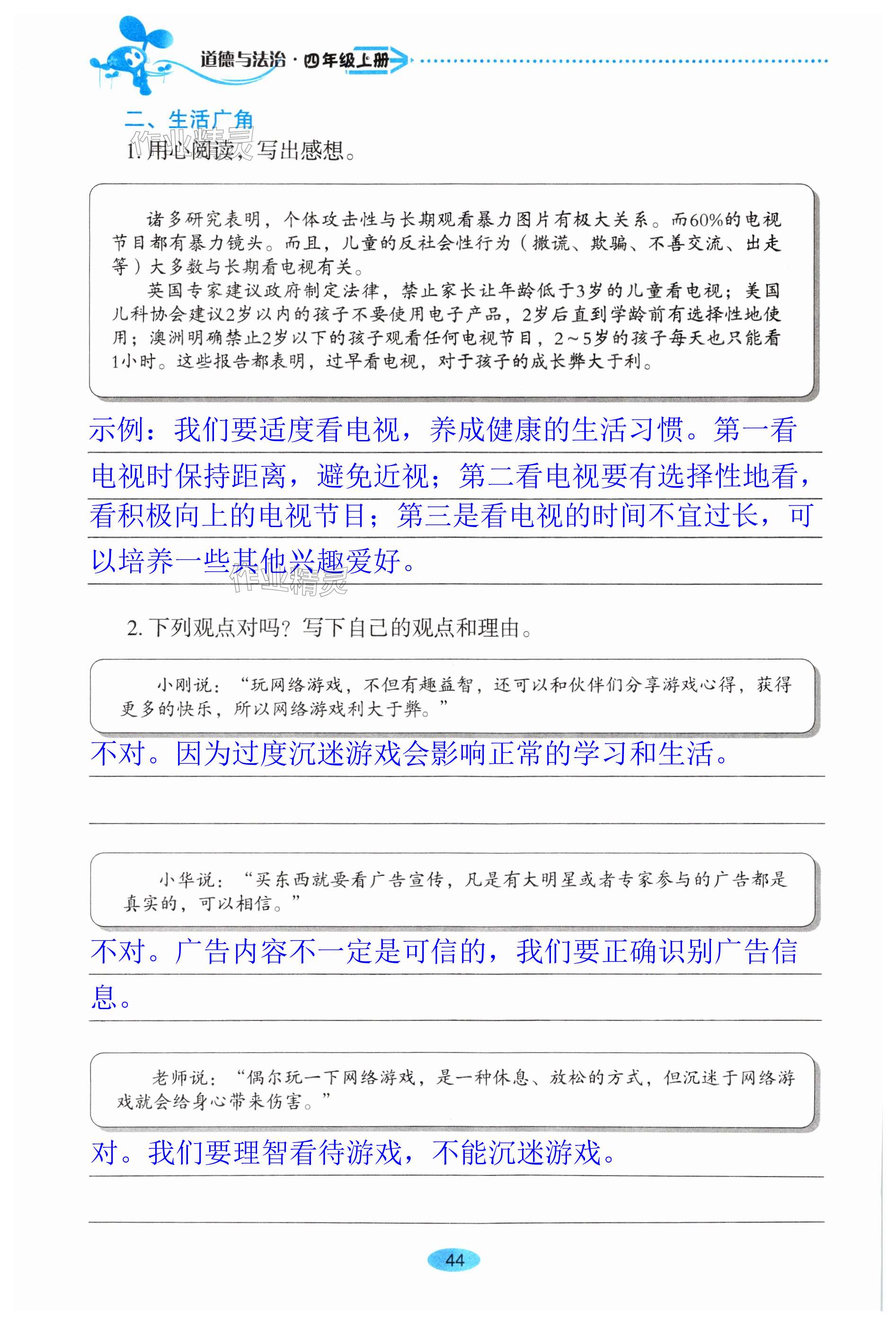 注:目前有些书本章节名称可能整理的还不是很完善,但都是按照顺序排列的,请同学们按照顺序仔细查找。练习册 2023年自主学习指导课程四年级道德与法治上册人教版 答案主要是用来给同学们做完题方便对答案用的,请勿直接抄袭。