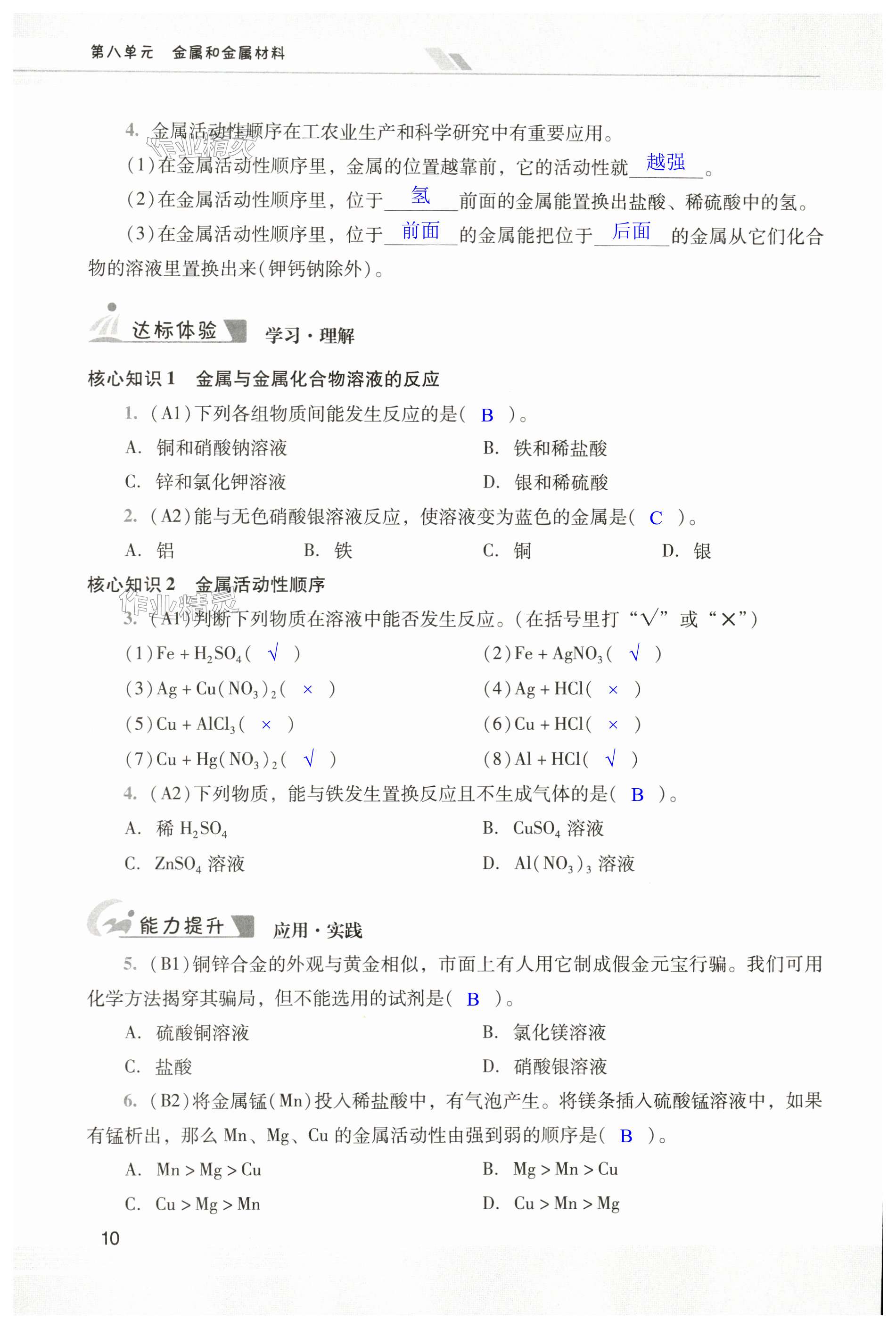 注:目前有些书本章节名称可能整理的还不是很完善,但都是按照顺序排列的,请同学们按照顺序仔细查找。练习册 2024年新课程学习辅导九年级化学下册人教版中山专版 答案主要是用来给同学们做完题方便对答案用的,请勿直接抄袭。
