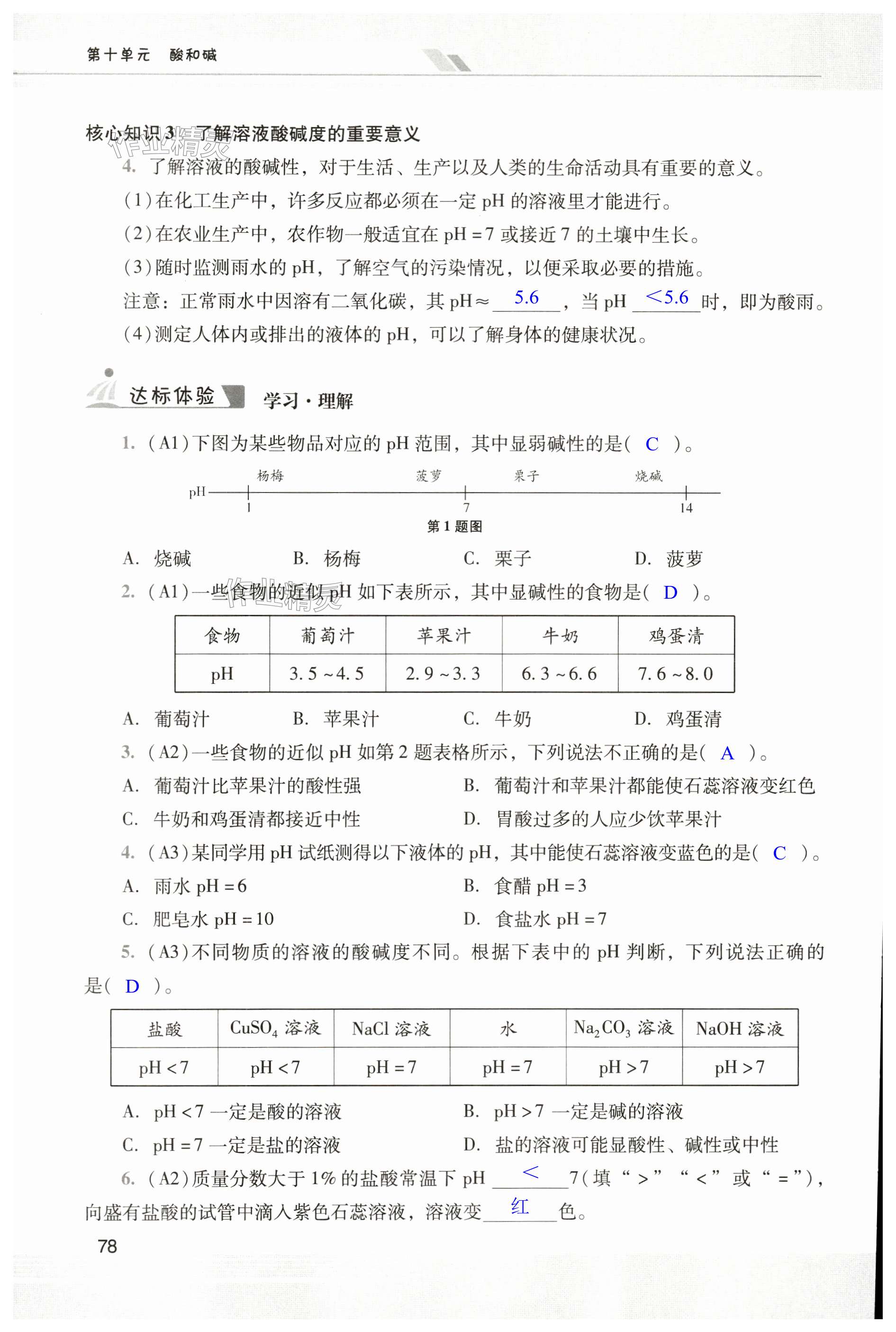 注:目前有些书本章节名称可能整理的还不是很完善,但都是按照顺序排列的,请同学们按照顺序仔细查找。练习册 2024年新课程学习辅导九年级化学下册人教版中山专版 答案主要是用来给同学们做完题方便对答案用的,请勿直接抄袭。