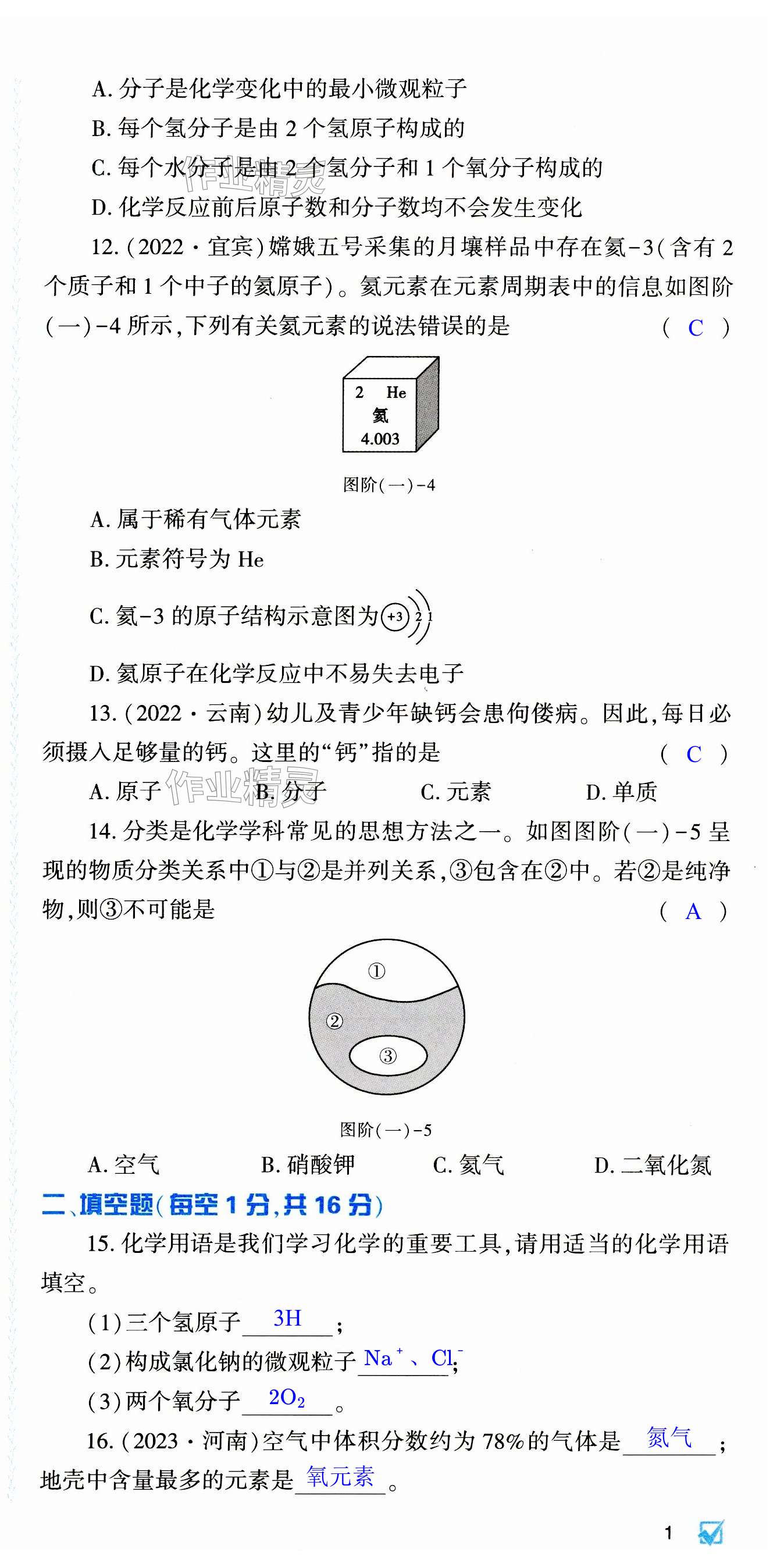 注:目前有些书本章节名称可能整理的还不是很完善,但都是按照顺序排列的,请同学们按照顺序仔细查找。练习册 2023年基础训练大象出版社九年级化学全一册科学版 答案主要是用来给同学们做完题方便对答案用的,请勿直接抄袭。