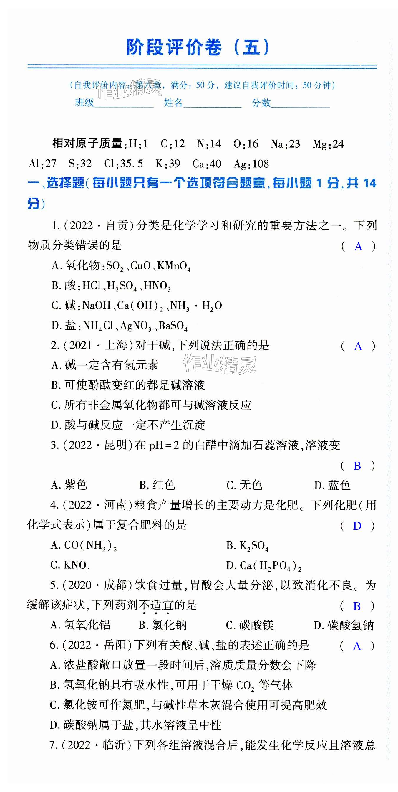 注:目前有些书本章节名称可能整理的还不是很完善,但都是按照顺序排列的,请同学们按照顺序仔细查找。练习册 2023年基础训练大象出版社九年级化学全一册科学版 答案主要是用来给同学们做完题方便对答案用的,请勿直接抄袭。