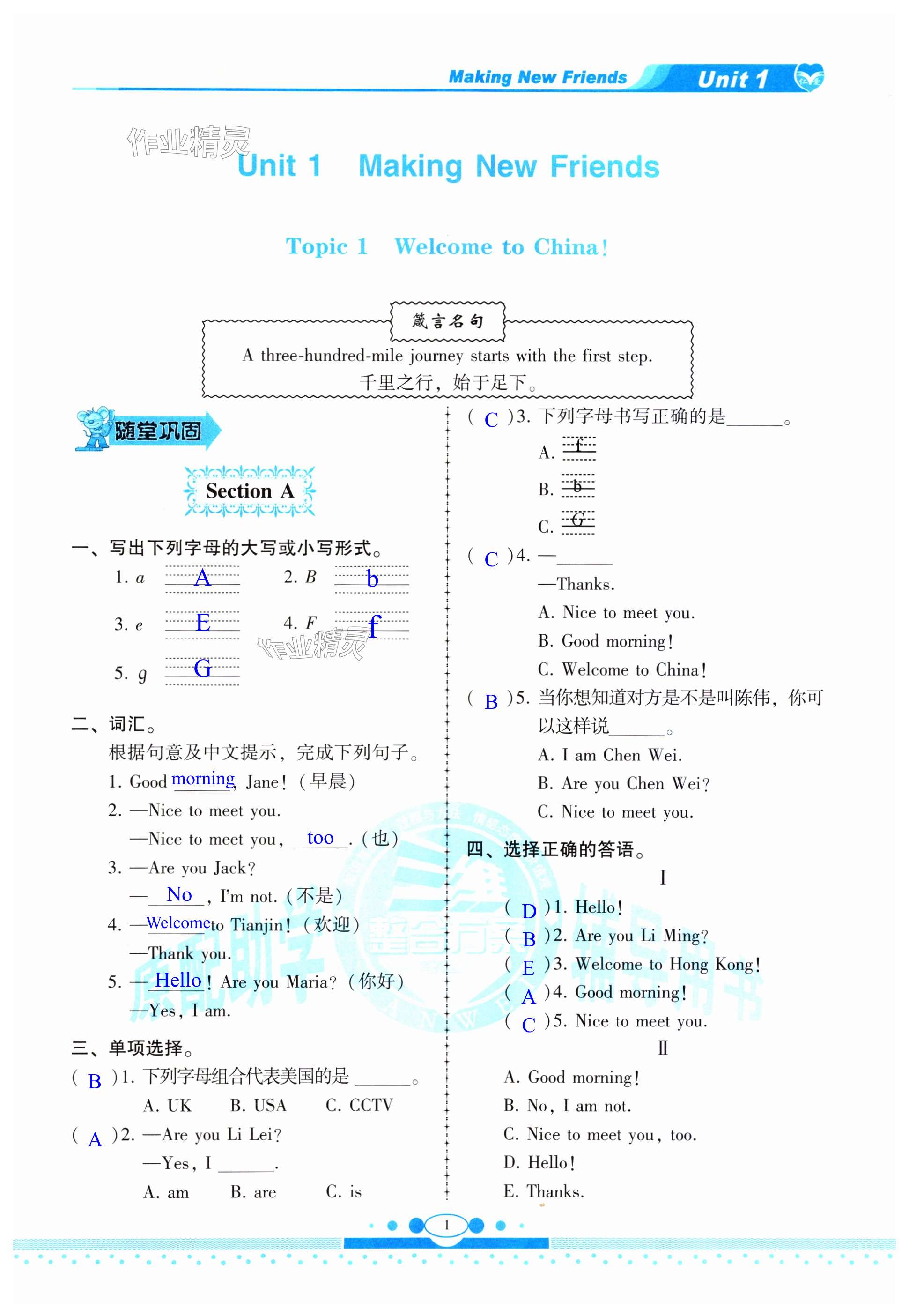 注:目前有些书本章节名称可能整理的还不是很完善,但都是按照顺序排列的,请同学们按照顺序仔细查找。练习册2023年仁爱英语同步练习册七年级上册仁爱版云南专版答案主要是用来给同学们做完题方便对答案用的,请勿直接抄袭。