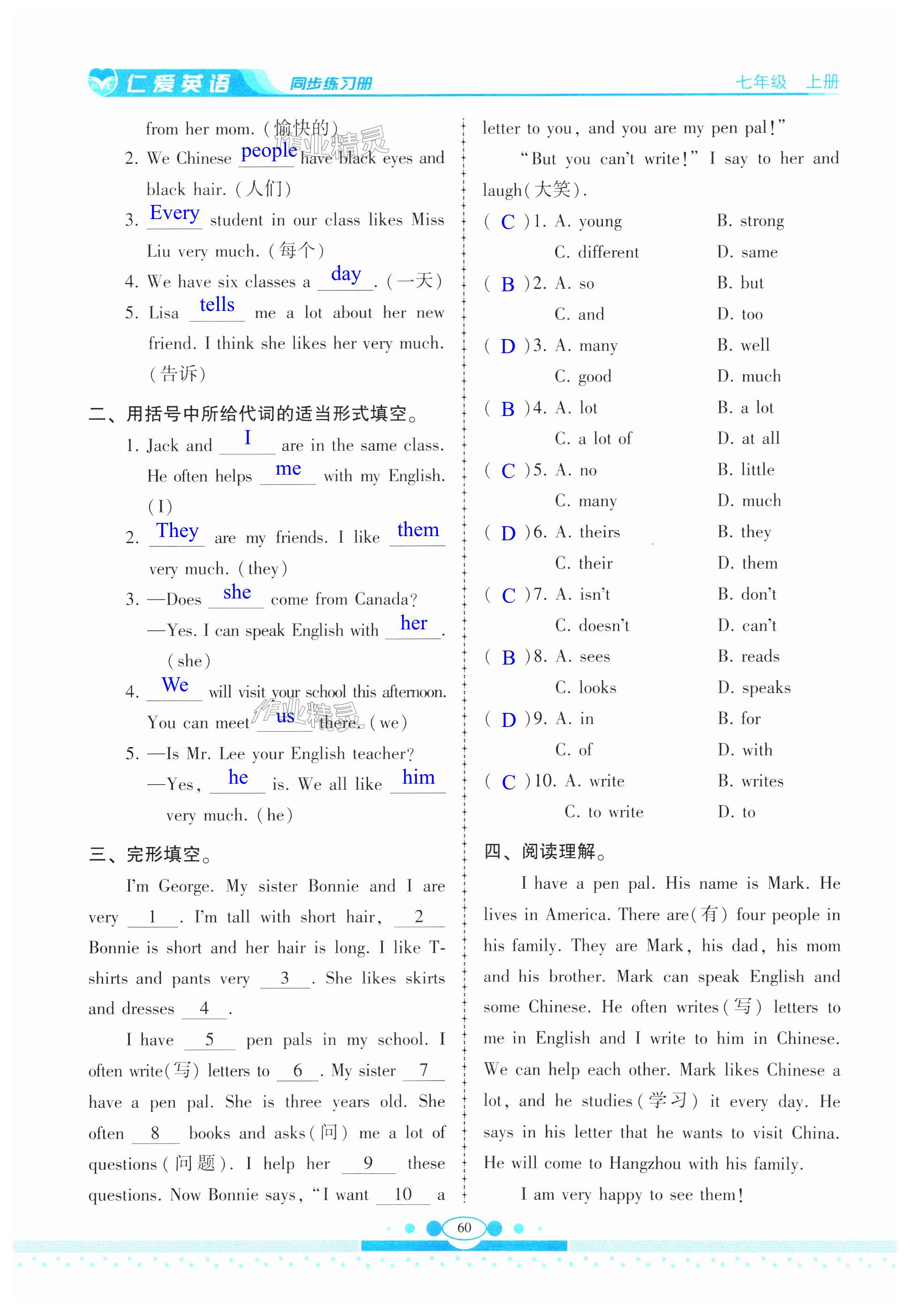 《2023年仁爱英语同步练习册七年级上册仁爱版云南专版》