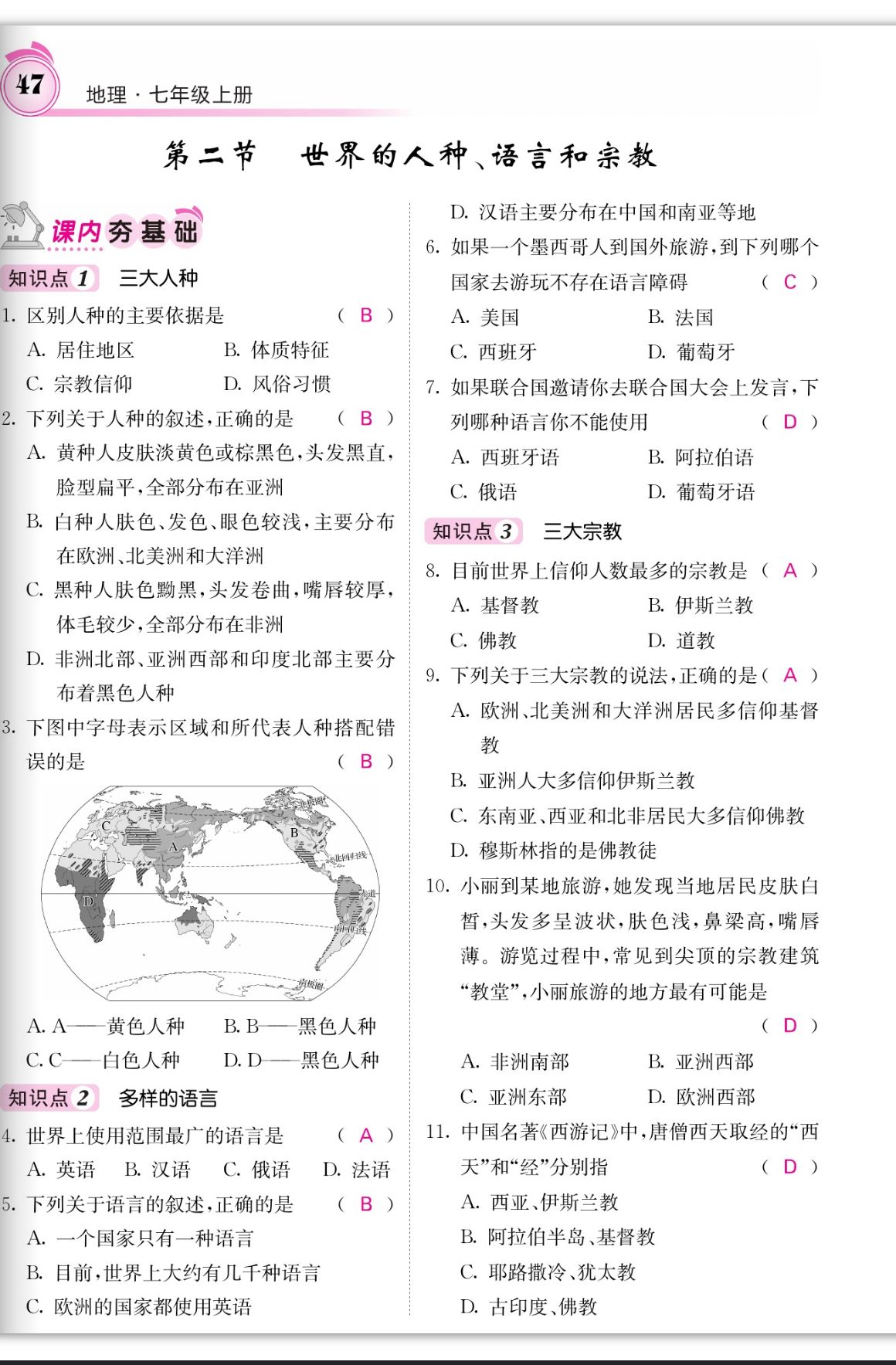 注:目前有些书本章节名称可能整理的还不是很完善,但都是按照顺序排列的,请同学们按照顺序仔细查找。练习册 2023年名校课堂内外七年级地理上册商务星球版 答案主要是用来给同学们做完题方便对答案用的,请勿直接抄袭。