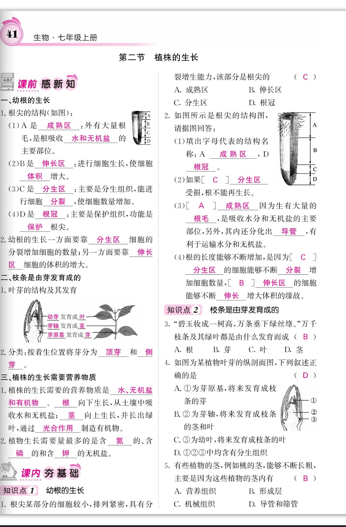 注:目前有些书本章节名称可能整理的还不是很完善,但都是按照顺序排列的,请同学们按照顺序仔细查找。练习册 2023年名校课堂内外七年级生物上册人教版 答案主要是用来给同学们做完题方便对答案用的,请勿直接抄袭。