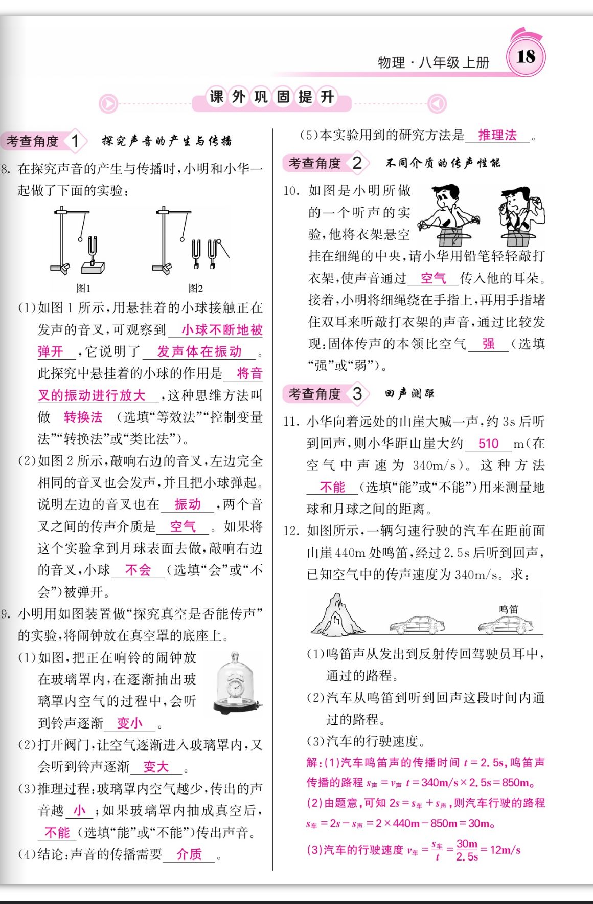 2023年名校课堂内外八年级物理上册人教版四川专版