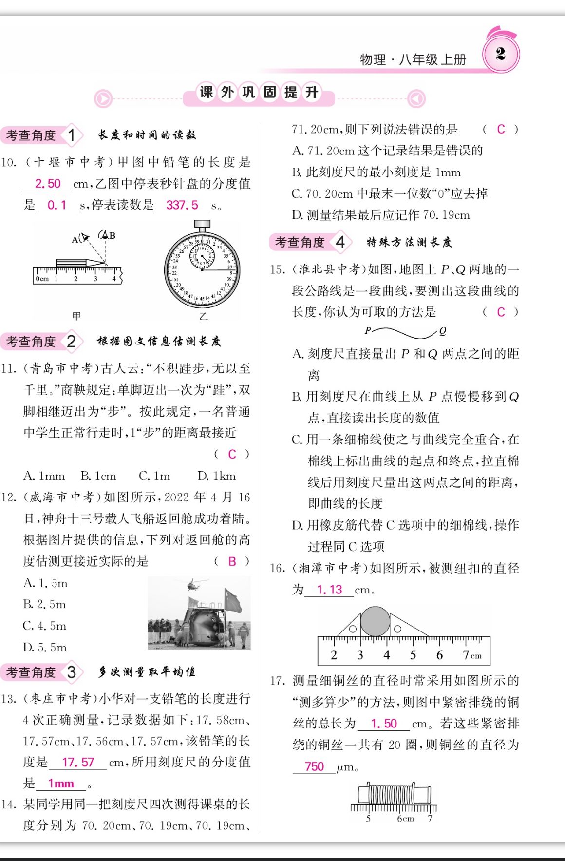 注:目前有些书本章节名称可能整理的还不是很完善,但都是按照顺序排列的,请同学们按照顺序仔细查找。练习册 2023年名校课堂内外八年级物理上册人教版四川专版 答案主要是用来给同学们做完题方便对答案用的,请勿直接抄袭。