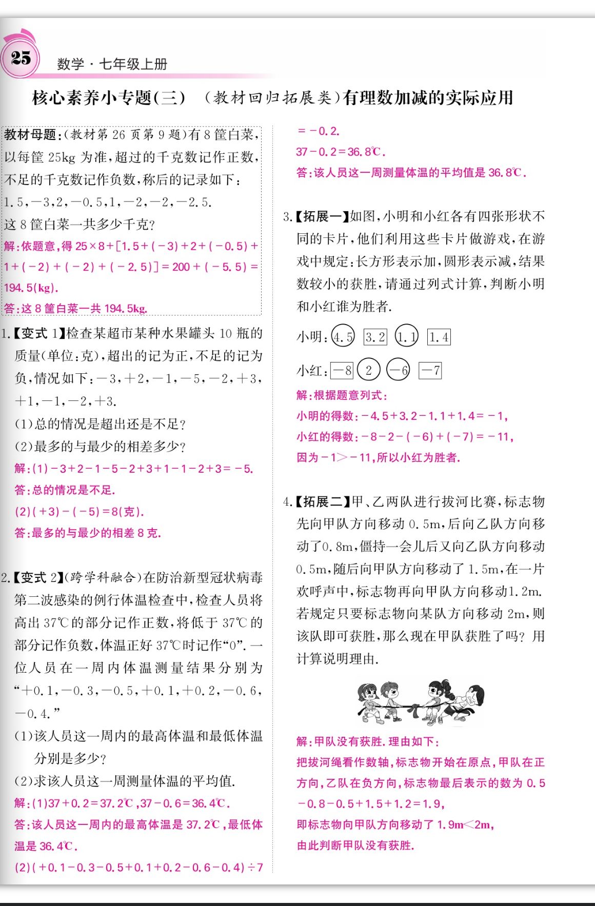 2023年名校课堂内外七年级数学上册人教版四川专版