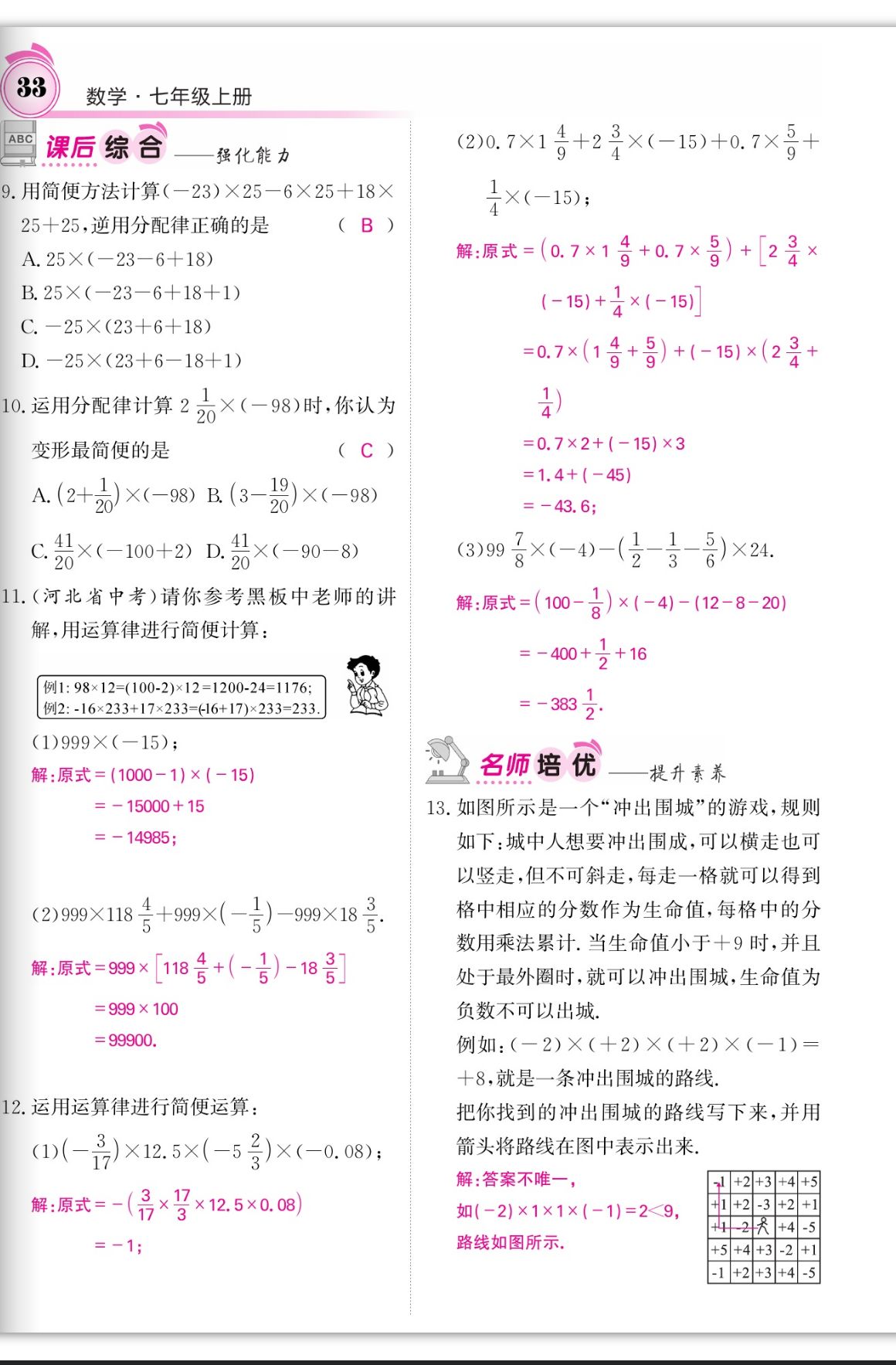 2023年名校课堂内外七年级数学上册人教版四川专版