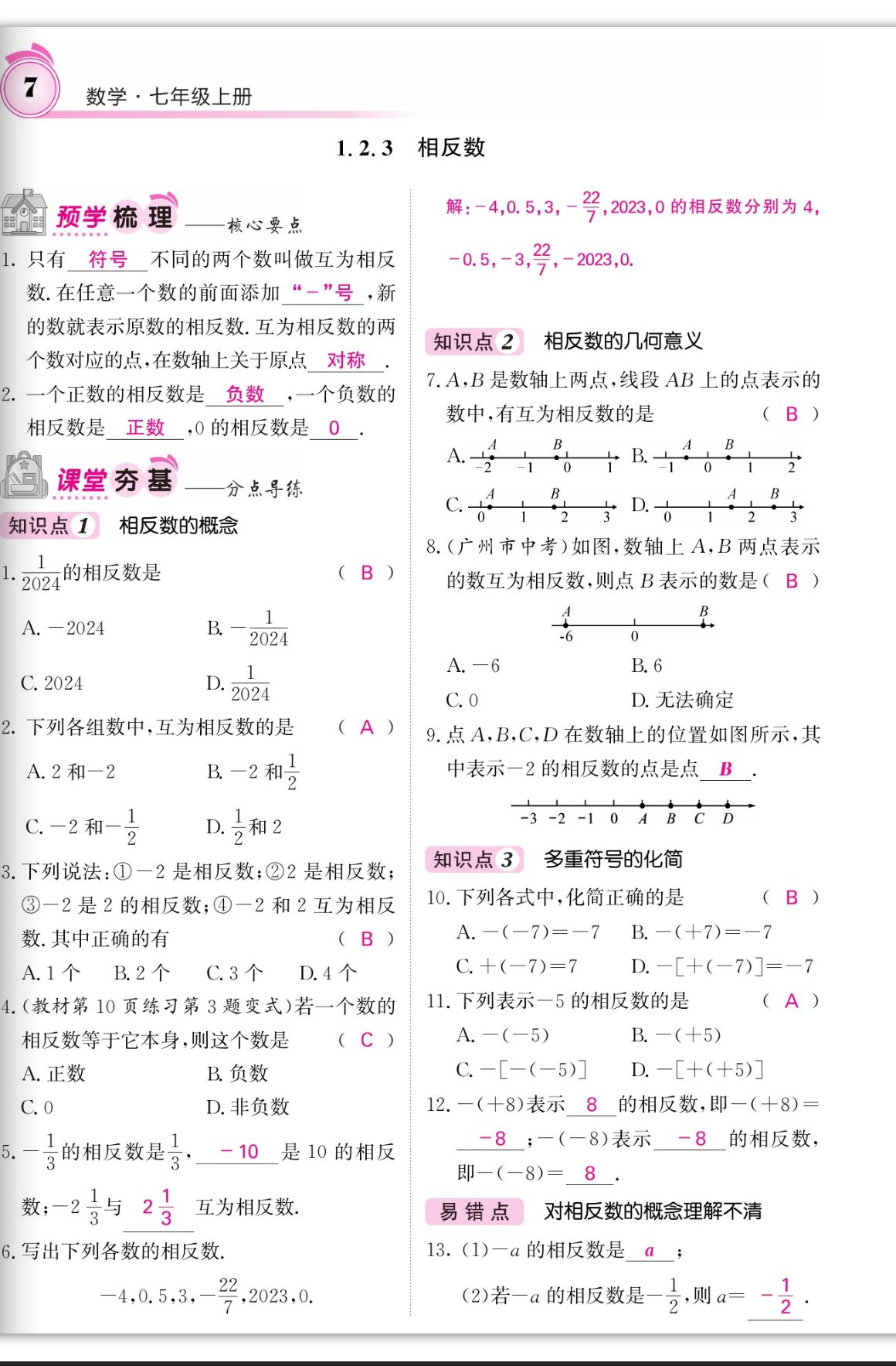 注:目前有些书本章节名称可能整理的还不是很完善,但都是按照顺序排列的,请同学们按照顺序仔细查找。练习册 2023年名校课堂内外七年级数学上册人教版四川专版 答案主要是用来给同学们做完题方便对答案用的,请勿直接抄袭。