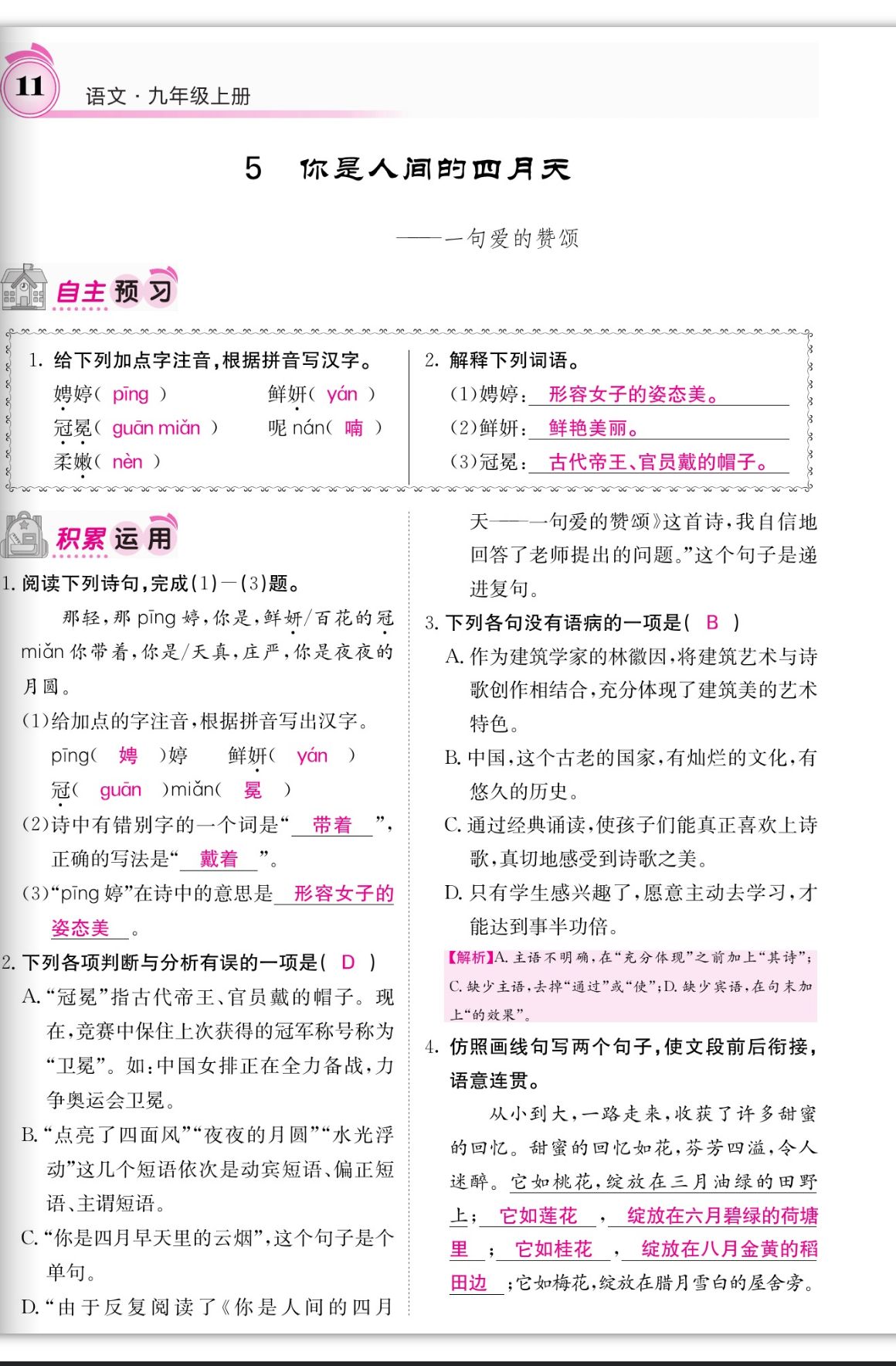 注:目前有些书本章节名称可能整理的还不是很完善,但都是按照顺序排列的,请同学们按照顺序仔细查找。练习册 2023年名校课堂内外九年级语文上册人教版四川专版 答案主要是用来给同学们做完题方便对答案用的,请勿直接抄袭。