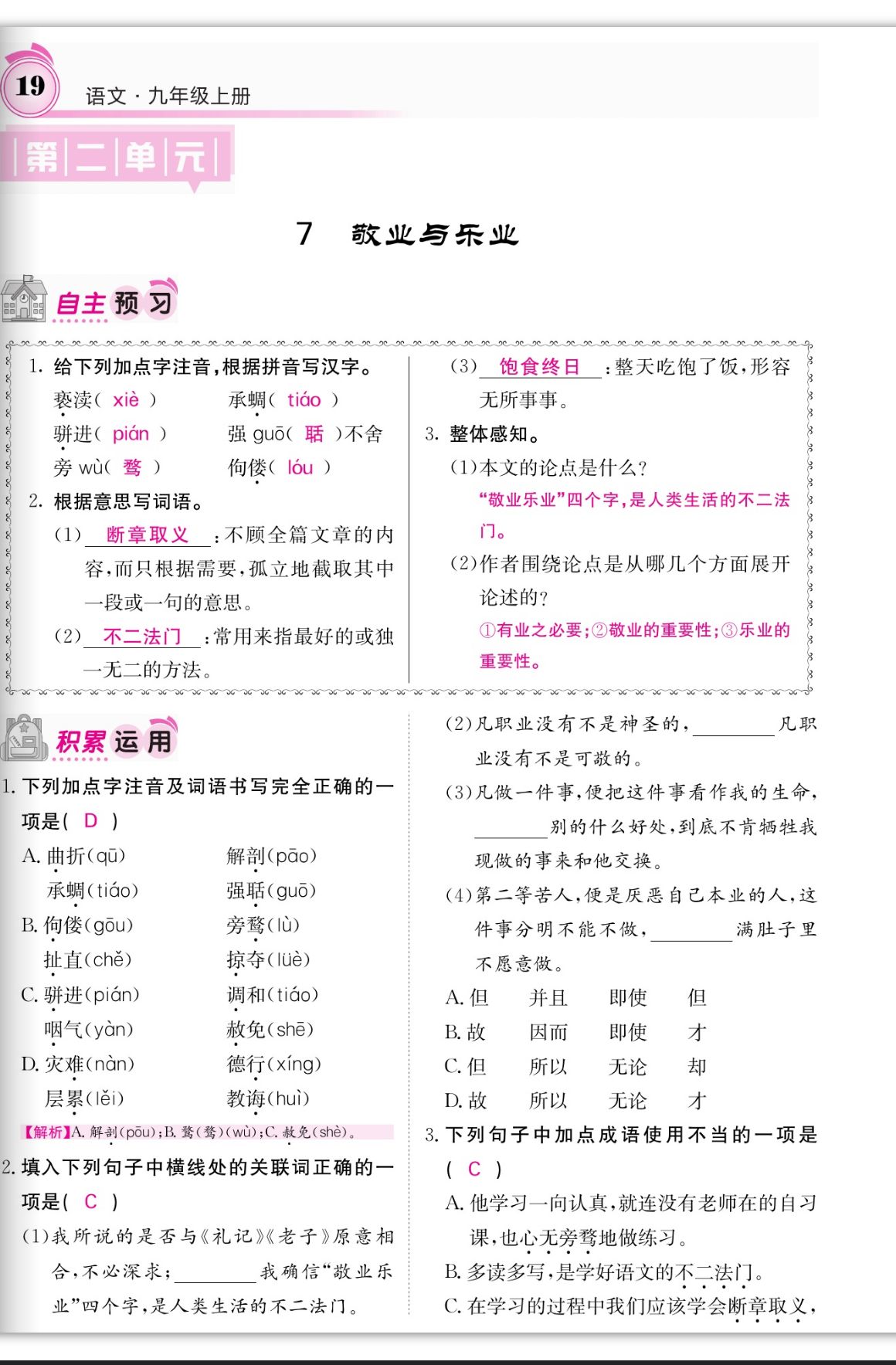 注:目前有些书本章节名称可能整理的还不是很完善,但都是按照顺序排列的,请同学们按照顺序仔细查找。练习册 2023年名校课堂内外九年级语文上册人教版四川专版 答案主要是用来给同学们做完题方便对答案用的,请勿直接抄袭。