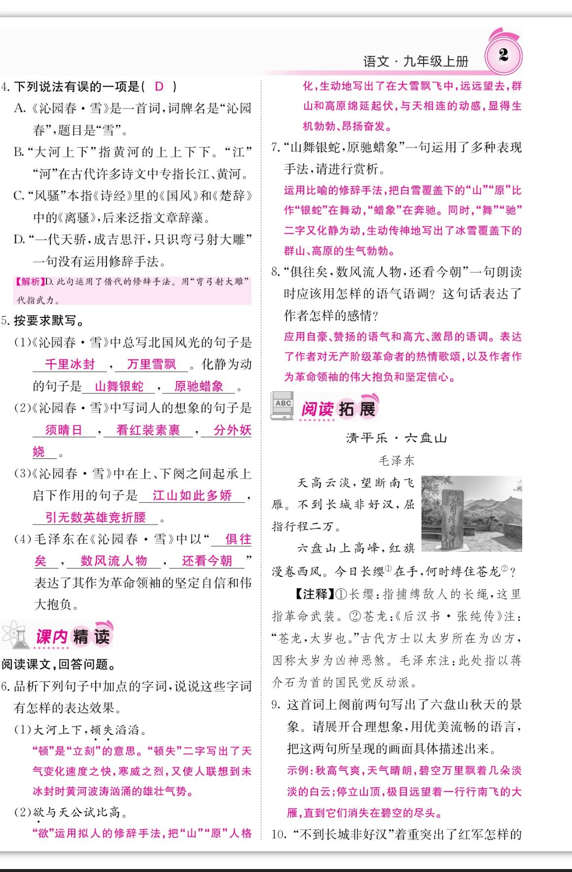 注:目前有些书本章节名称可能整理的还不是很完善,但都是按照顺序排列的,请同学们按照顺序仔细查找。练习册 2023年名校课堂内外九年级语文上册人教版四川专版 答案主要是用来给同学们做完题方便对答案用的,请勿直接抄袭。