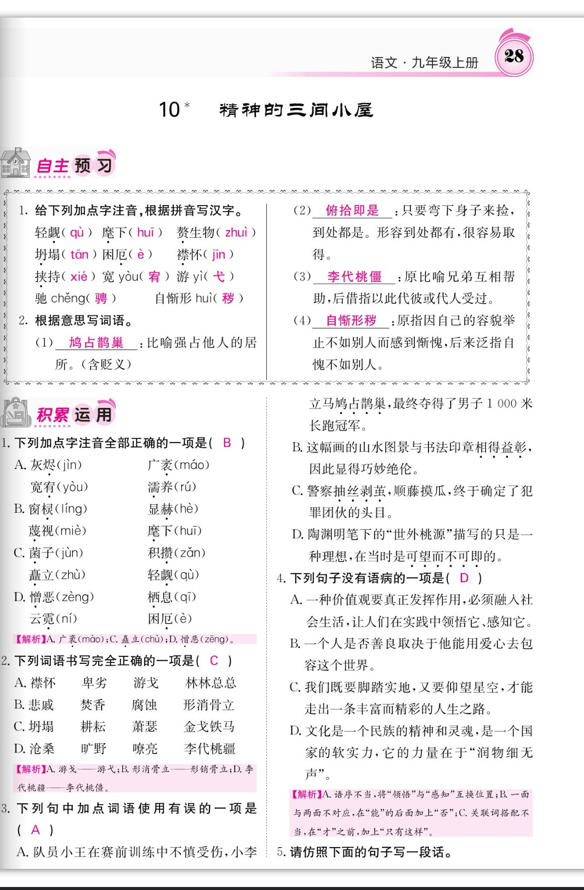 注:目前有些书本章节名称可能整理的还不是很完善,但都是按照顺序排列的,请同学们按照顺序仔细查找。练习册 2023年名校课堂内外九年级语文上册人教版四川专版 答案主要是用来给同学们做完题方便对答案用的,请勿直接抄袭。