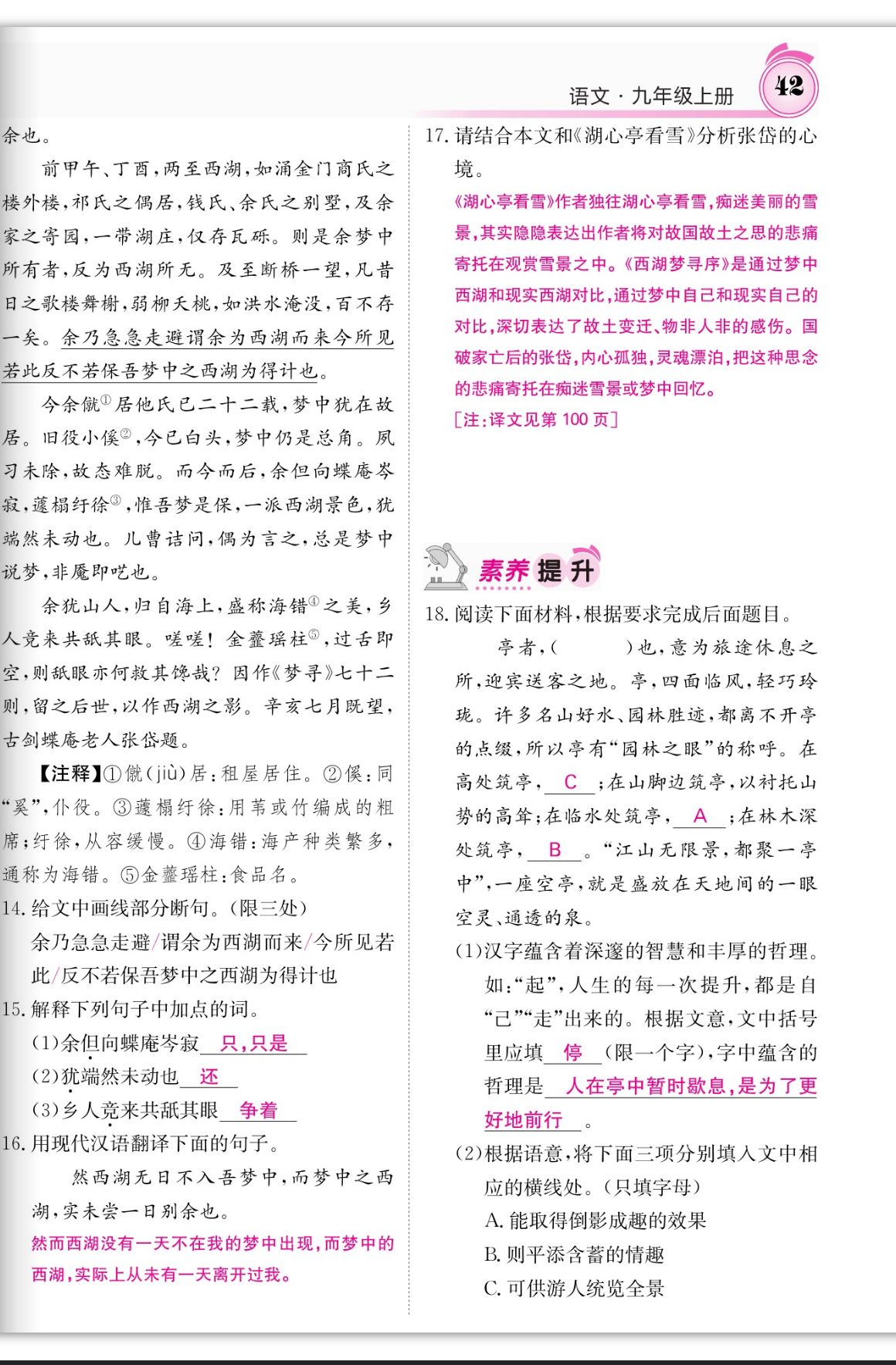 注:目前有些书本章节名称可能整理的还不是很完善,但都是按照顺序排列的,请同学们按照顺序仔细查找。练习册 2023年名校课堂内外九年级语文上册人教版四川专版 答案主要是用来给同学们做完题方便对答案用的,请勿直接抄袭。