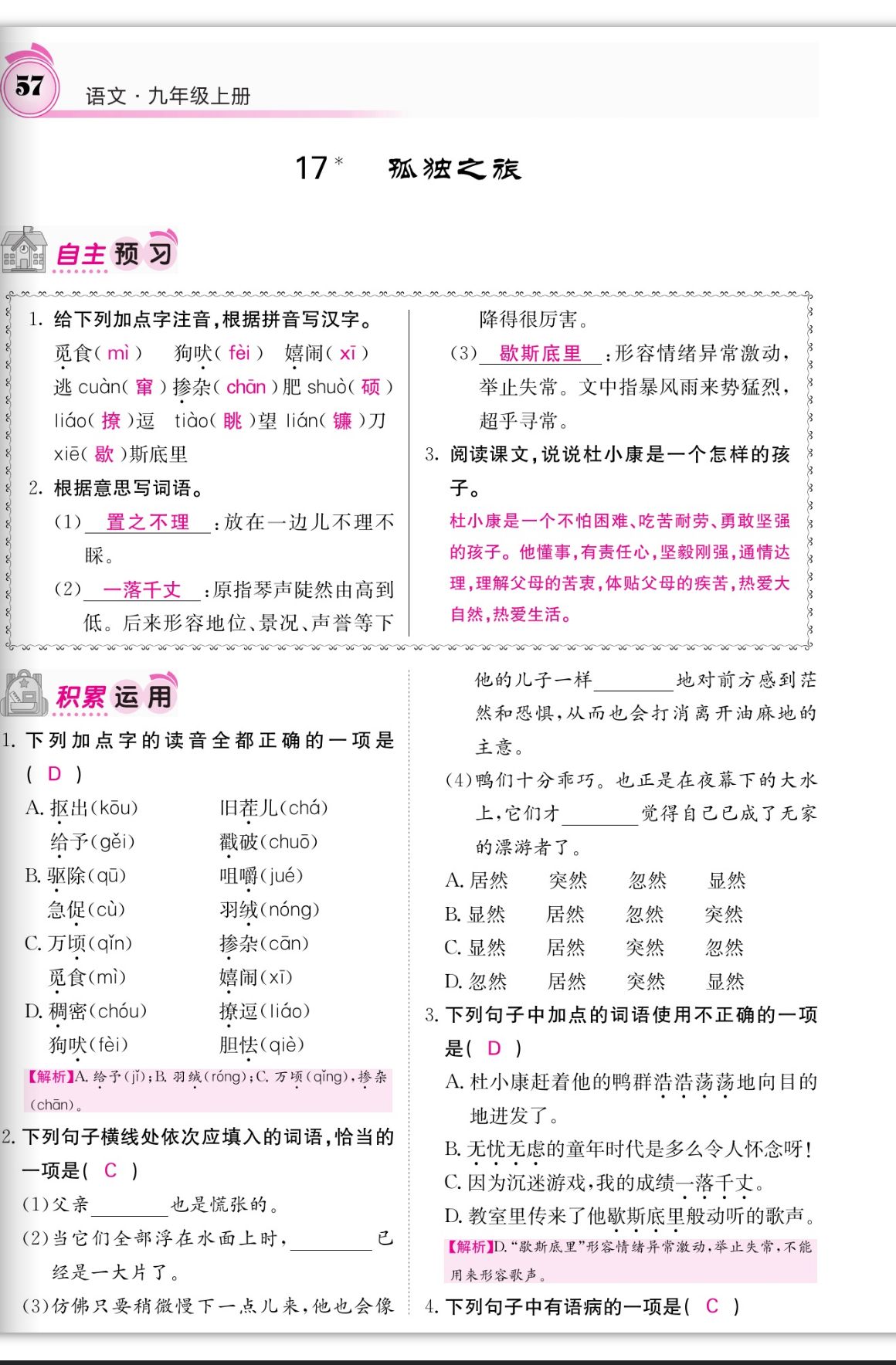 注:目前有些书本章节名称可能整理的还不是很完善,但都是按照顺序排列的,请同学们按照顺序仔细查找。练习册 2023年名校课堂内外九年级语文上册人教版四川专版 答案主要是用来给同学们做完题方便对答案用的,请勿直接抄袭。