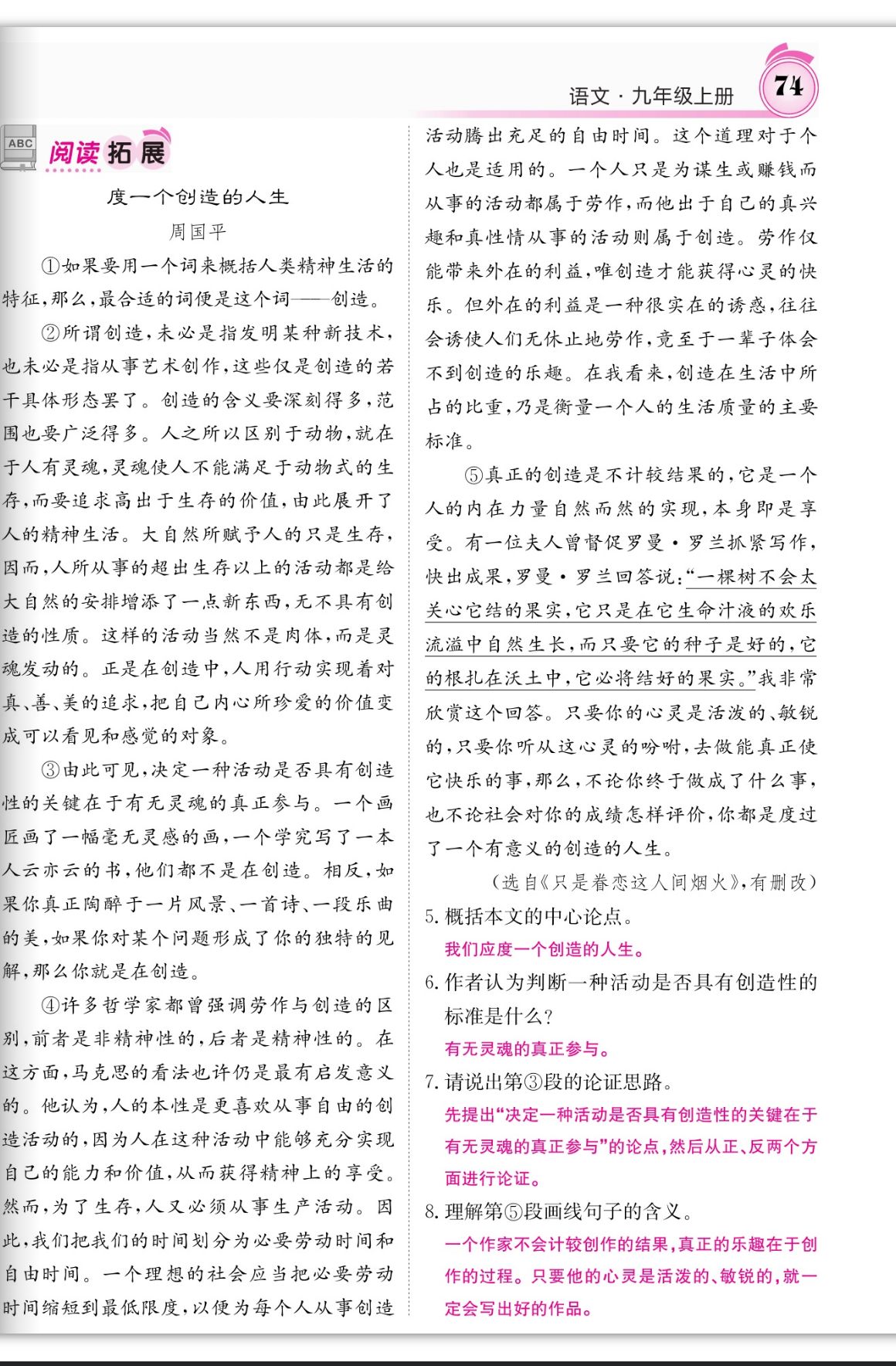 2023年名校课堂内外九年级语文上册人教版四川专版