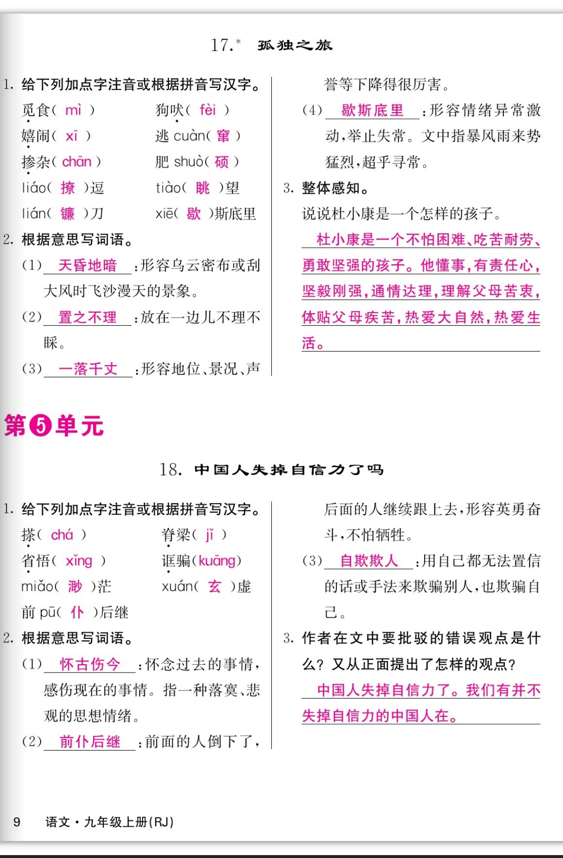 注:目前有些书本章节名称可能整理的还不是很完善,但都是按照顺序排列的,请同学们按照顺序仔细查找。练习册 2023年名校课堂内外九年级语文上册人教版四川专版 答案主要是用来给同学们做完题方便对答案用的,请勿直接抄袭。