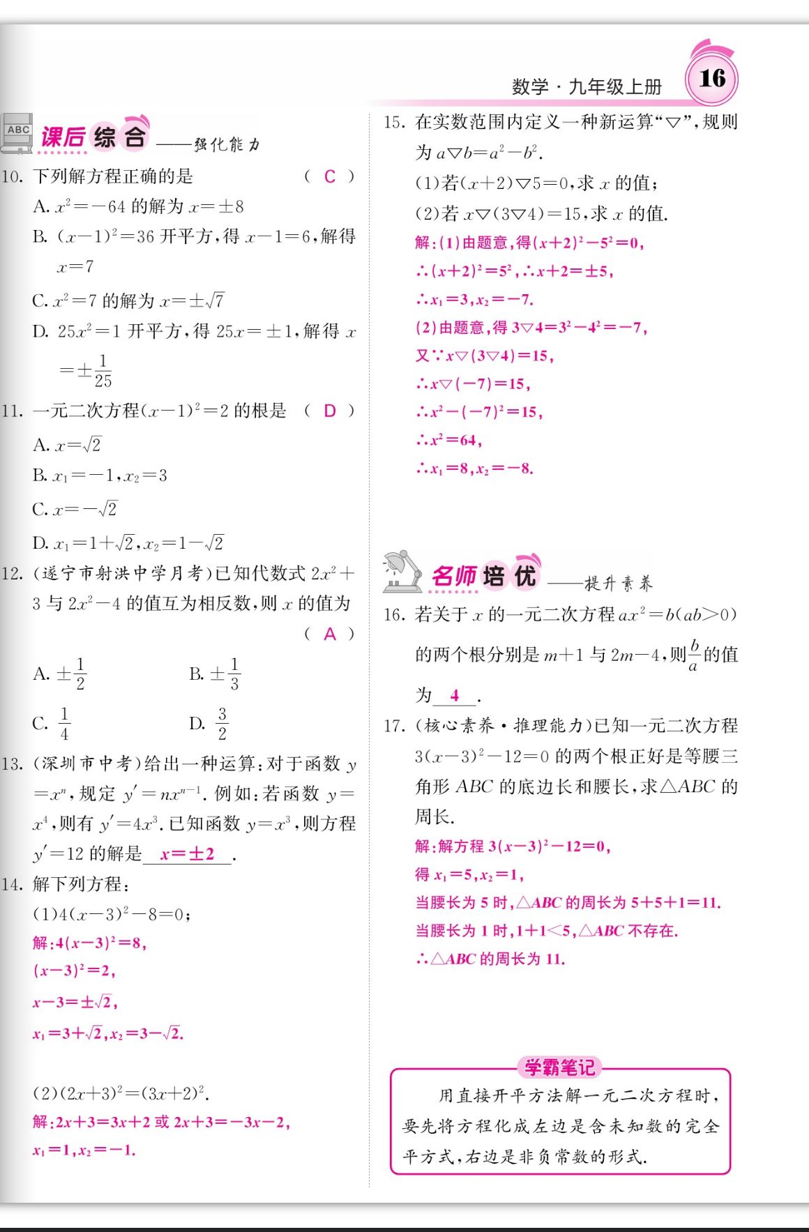 注:目前有些书本章节名称可能整理的还不是很完善,但都是按照顺序排列的,请同学们按照顺序仔细查找。练习册 2023年名校课堂内外九年级数学上册华师大版四川专版 答案主要是用来给同学们做完题方便对答案用的,请勿直接抄袭。