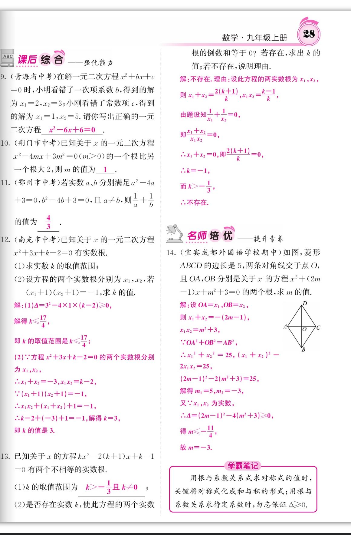 注:目前有些书本章节名称可能整理的还不是很完善,但都是按照顺序排列的,请同学们按照顺序仔细查找。练习册 2023年名校课堂内外九年级数学上册华师大版四川专版 答案主要是用来给同学们做完题方便对答案用的,请勿直接抄袭。