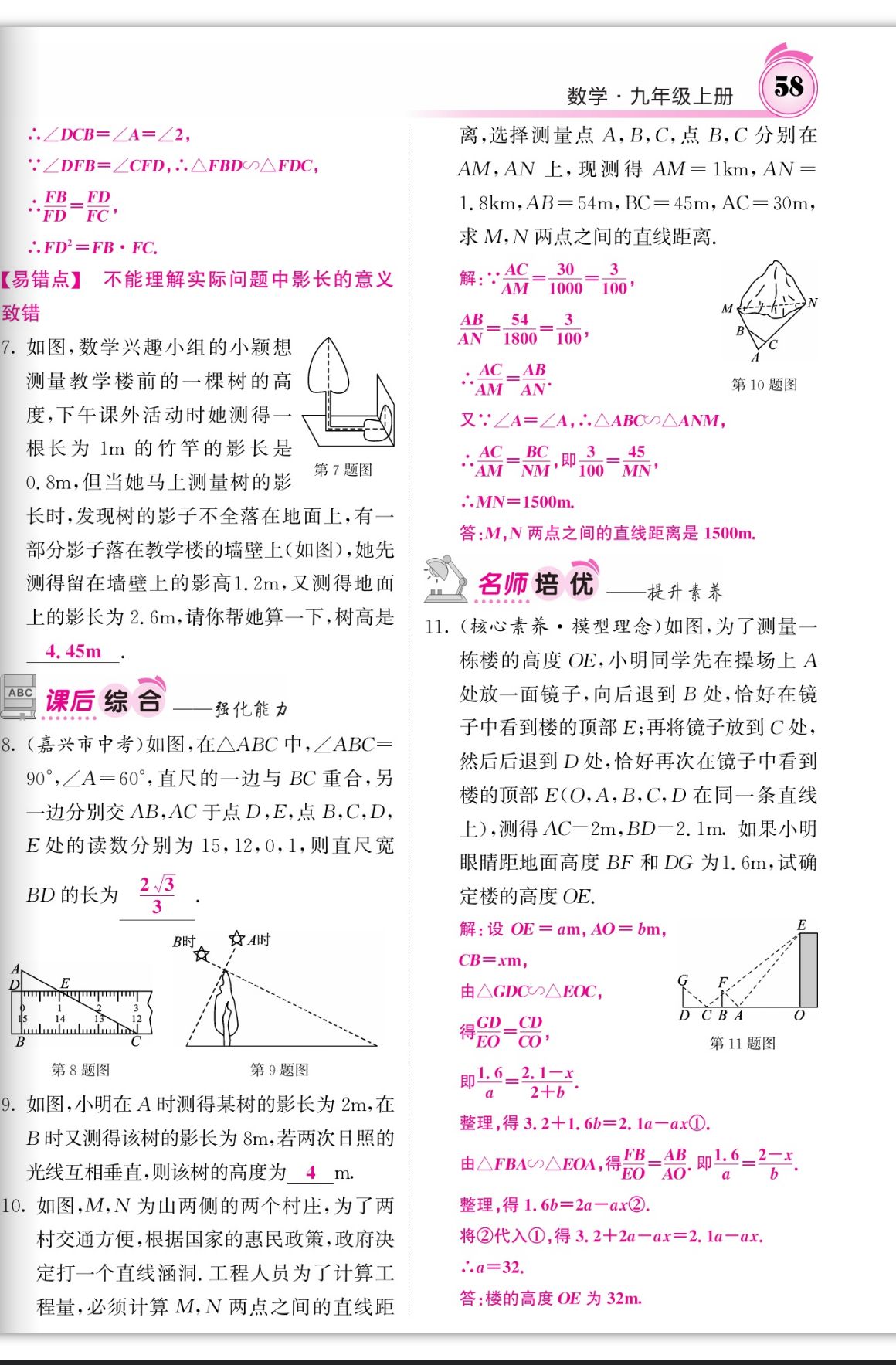 2023年名校课堂内外九年级数学上册华师大版四川专版
