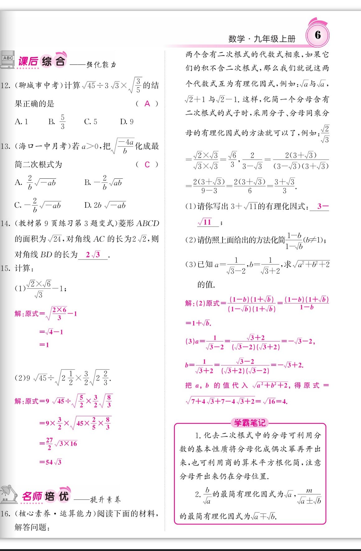 注:目前有些书本章节名称可能整理的还不是很完善,但都是按照顺序排列的,请同学们按照顺序仔细查找。练习册 2023年名校课堂内外九年级数学上册华师大版四川专版 答案主要是用来给同学们做完题方便对答案用的,请勿直接抄袭。