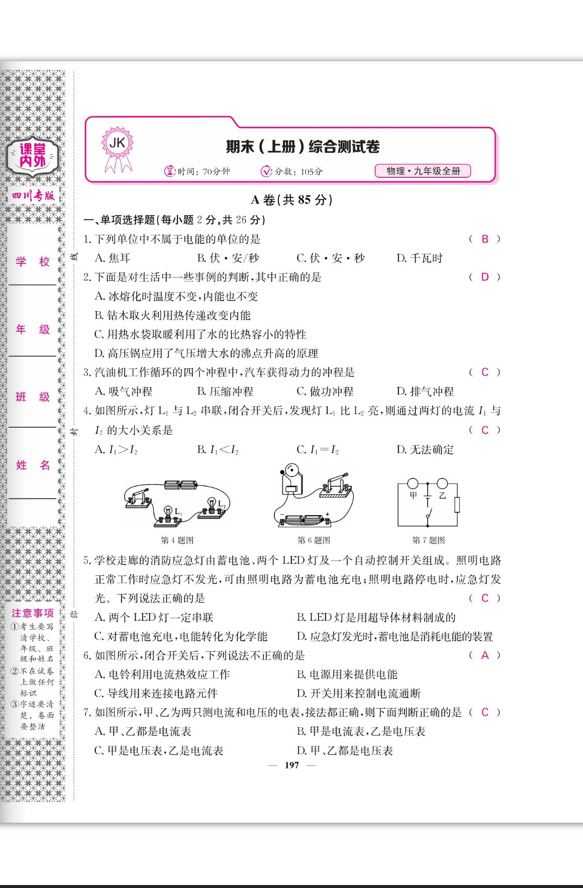 注:目前有些书本章节名称可能整理的还不是很完善,但都是按照顺序排列的,请同学们按照顺序仔细查找。练习册 2023年名校课堂内外九年级物理上册教科版四川专版 答案主要是用来给同学们做完题方便对答案用的,请勿直接抄袭。