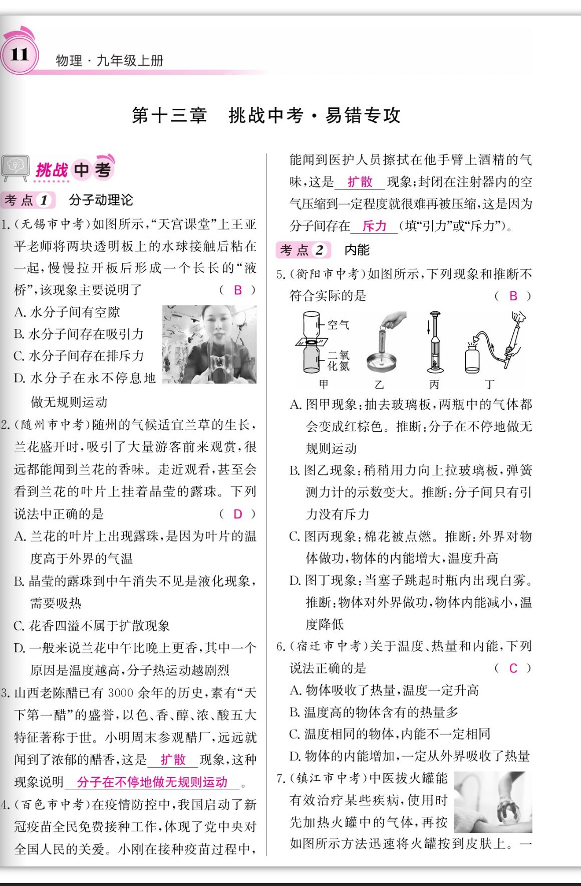 注:目前有些书本章节名称可能整理的还不是很完善,但都是按照顺序排列的,请同学们按照顺序仔细查找。练习册 2023年名校课堂内外九年级物理上册人教版四川专版 答案主要是用来给同学们做完题方便对答案用的,请勿直接抄袭。