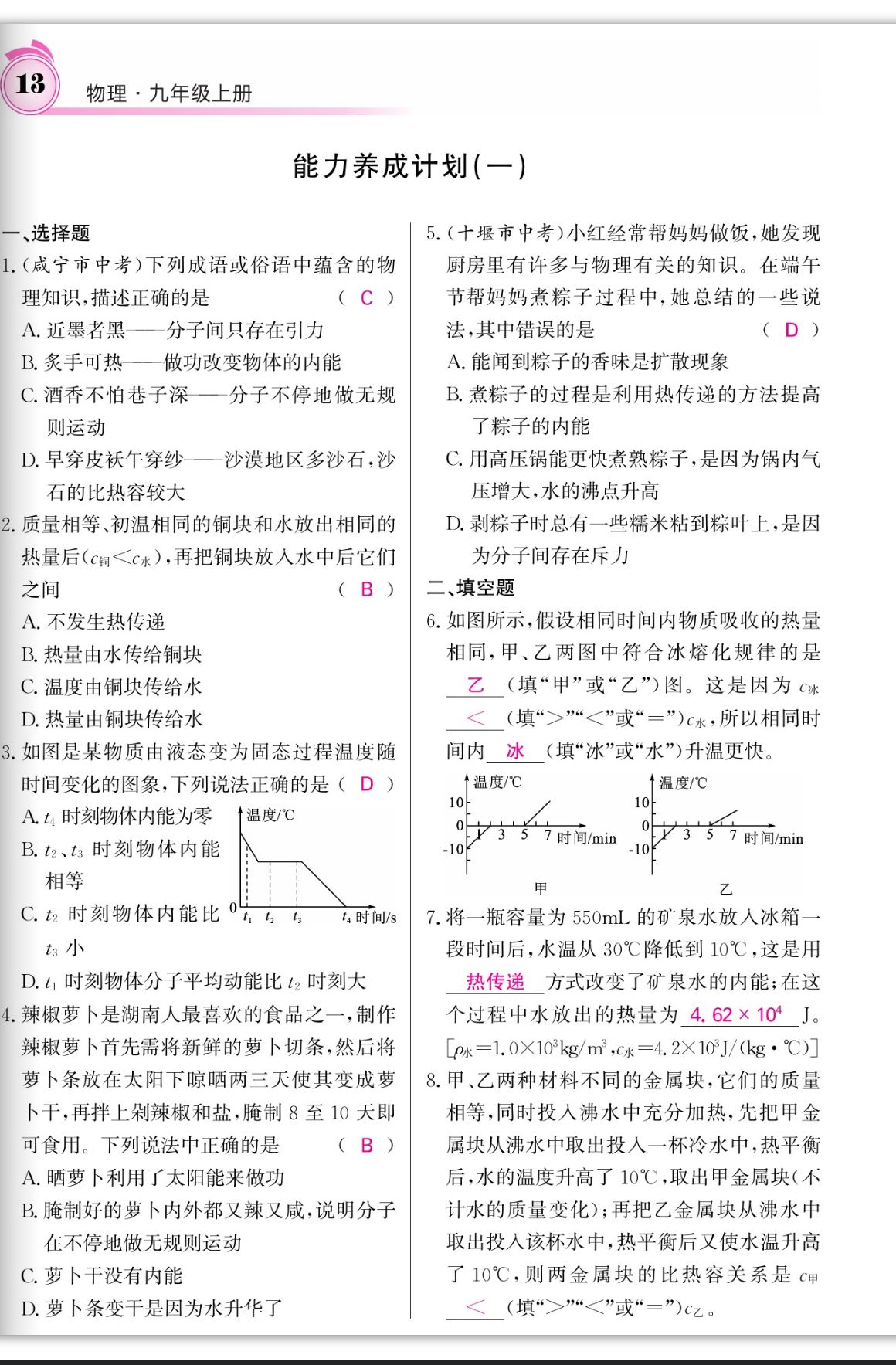 注:目前有些书本章节名称可能整理的还不是很完善,但都是按照顺序排列的,请同学们按照顺序仔细查找。练习册 2023年名校课堂内外九年级物理上册人教版四川专版 答案主要是用来给同学们做完题方便对答案用的,请勿直接抄袭。