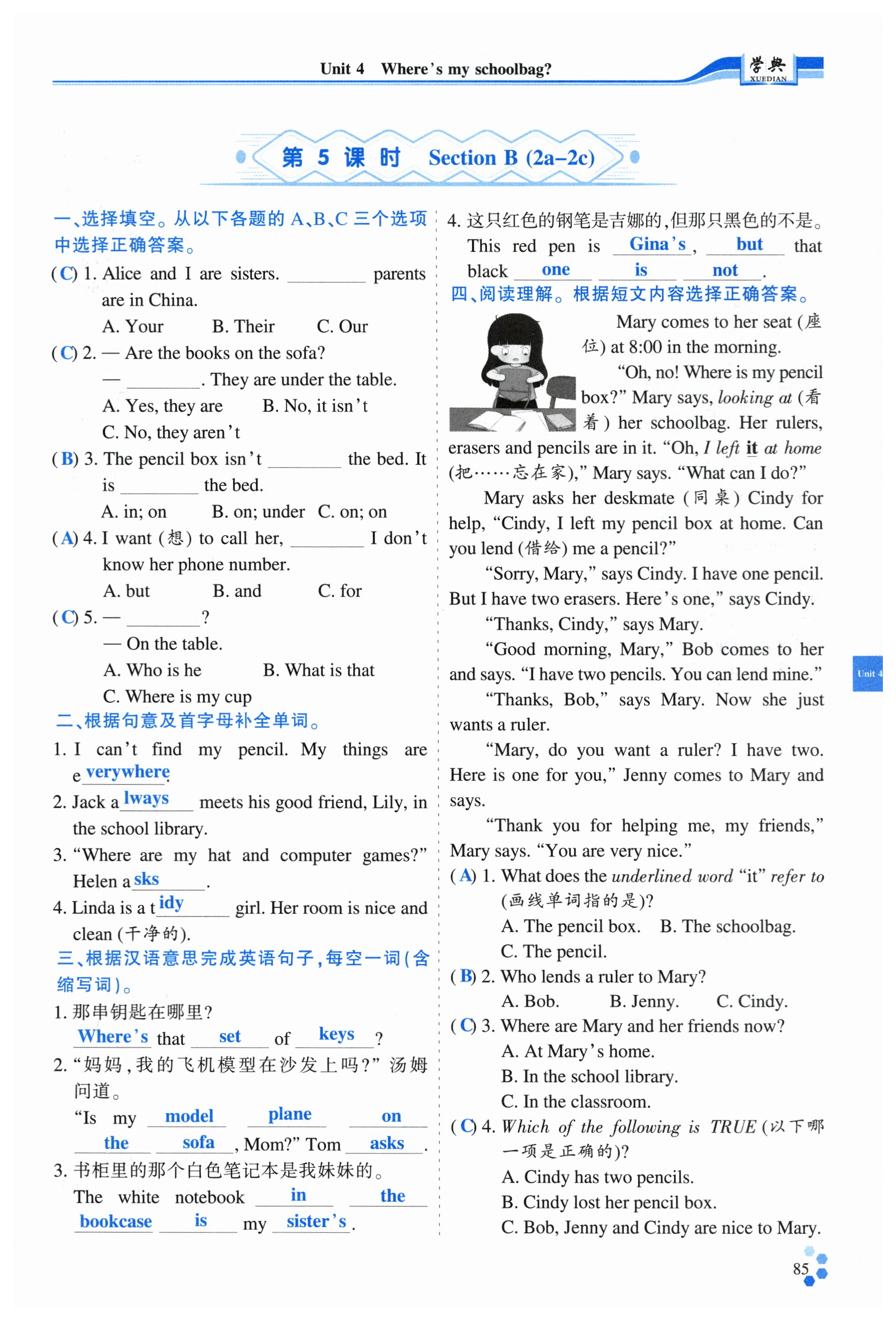 注:目前有些书本章节名称可能整理的还不是很完善,但都是按照顺序排列的,请同学们按照顺序仔细查找。练习册 2023年学典四川七年级英语上册人教版成都专版 答案主要是用来给同学们做完题方便对答案用的,请勿直接抄袭。