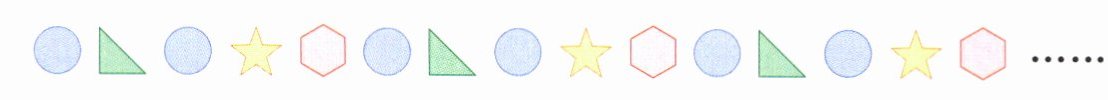 1. 这列图形的排列规律是( )个和( )个重复出现的,即( )个图形为一组,第30个图形是( )。