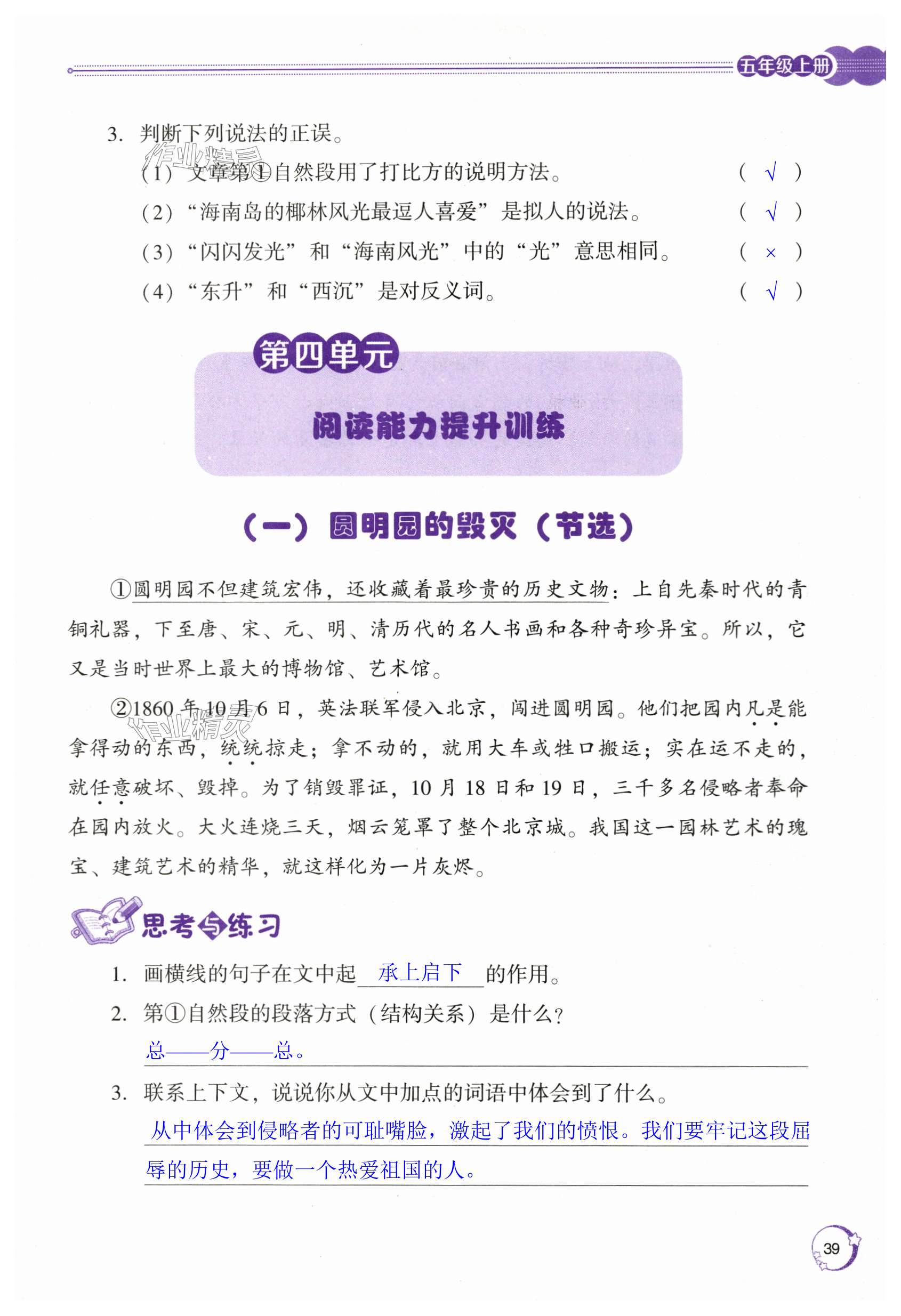 2023年阅读与训练名师学堂五年级语文上册人教版