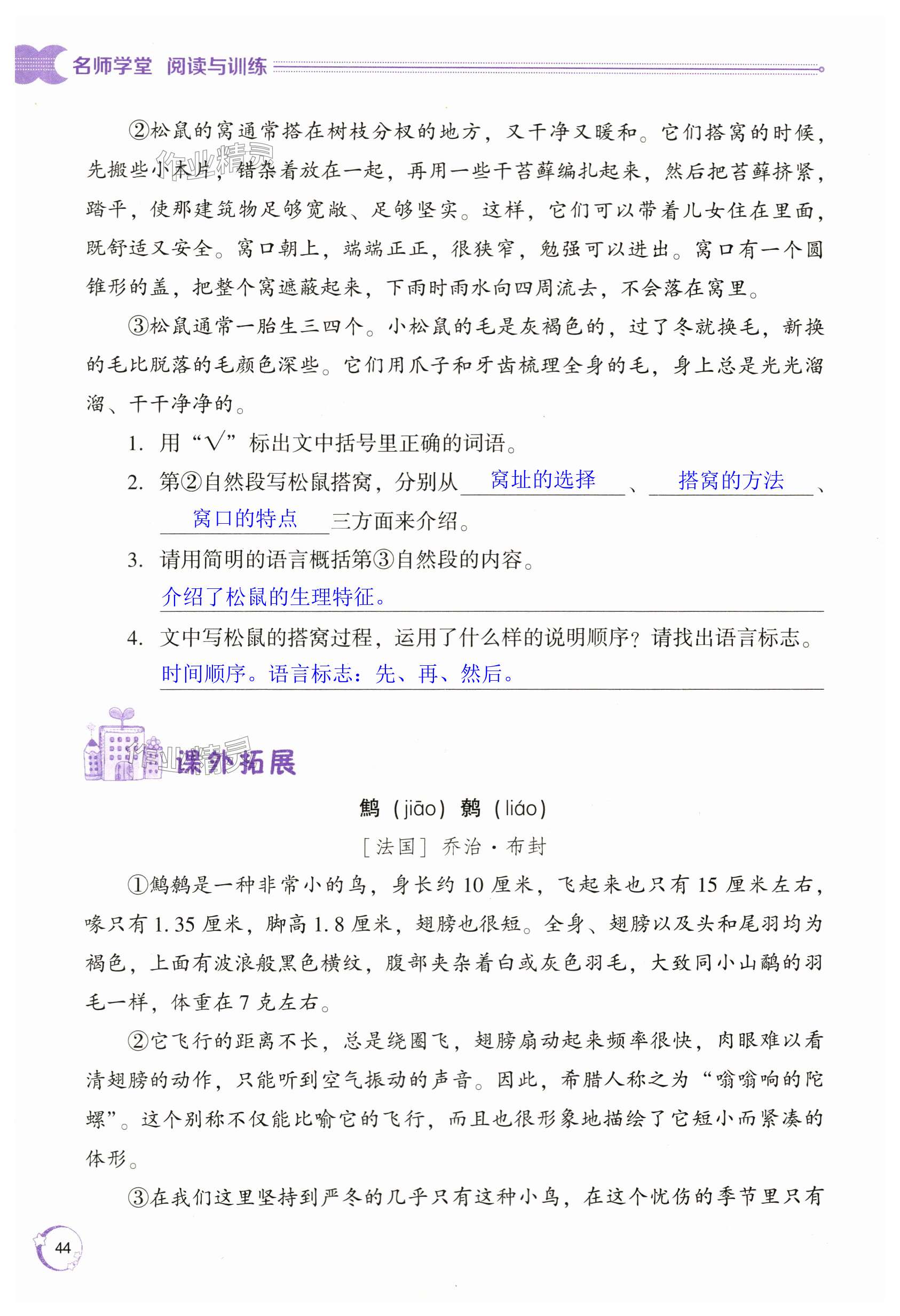 注:目前有些书本章节名称可能整理的还不是很完善,但都是按照顺序排列的,请同学们按照顺序仔细查找。练习册 2023年阅读与训练名师学堂五年级语文上册人教版 答案主要是用来给同学们做完题方便对答案用的,请勿直接抄袭。