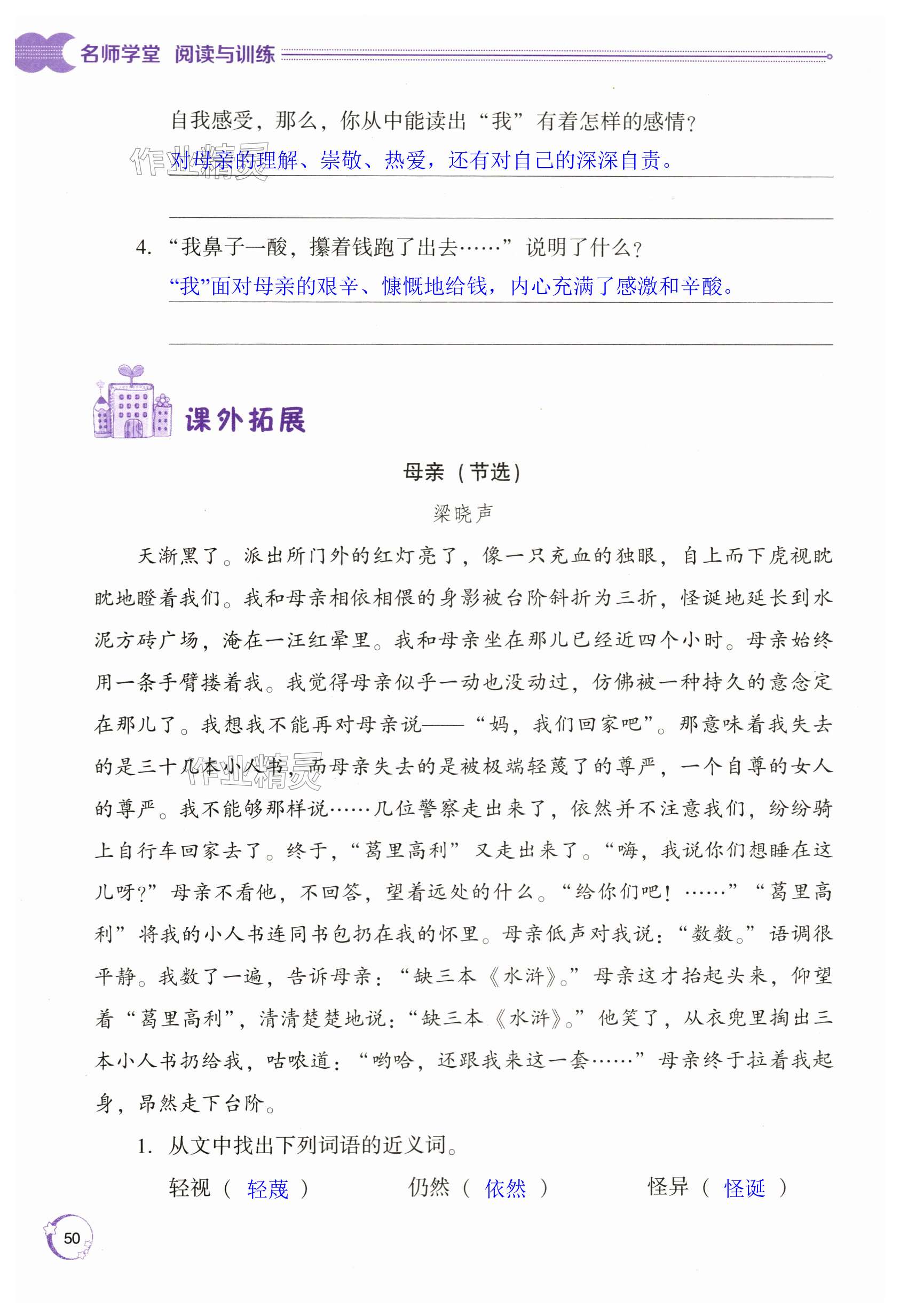 注:目前有些书本章节名称可能整理的还不是很完善,但都是按照顺序排列的,请同学们按照顺序仔细查找。练习册 2023年阅读与训练名师学堂五年级语文上册人教版 答案主要是用来给同学们做完题方便对答案用的,请勿直接抄袭。