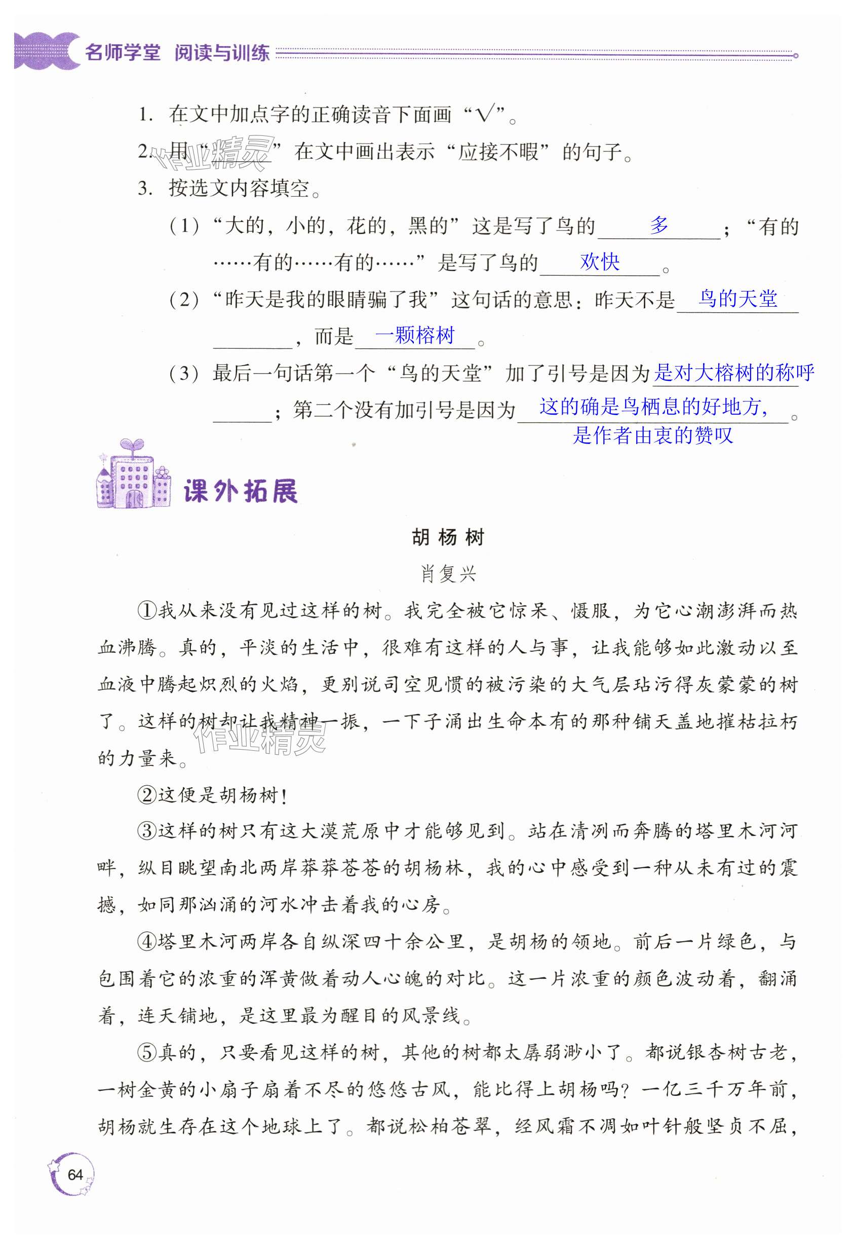 注:目前有些书本章节名称可能整理的还不是很完善,但都是按照顺序排列的,请同学们按照顺序仔细查找。练习册 2023年阅读与训练名师学堂五年级语文上册人教版 答案主要是用来给同学们做完题方便对答案用的,请勿直接抄袭。