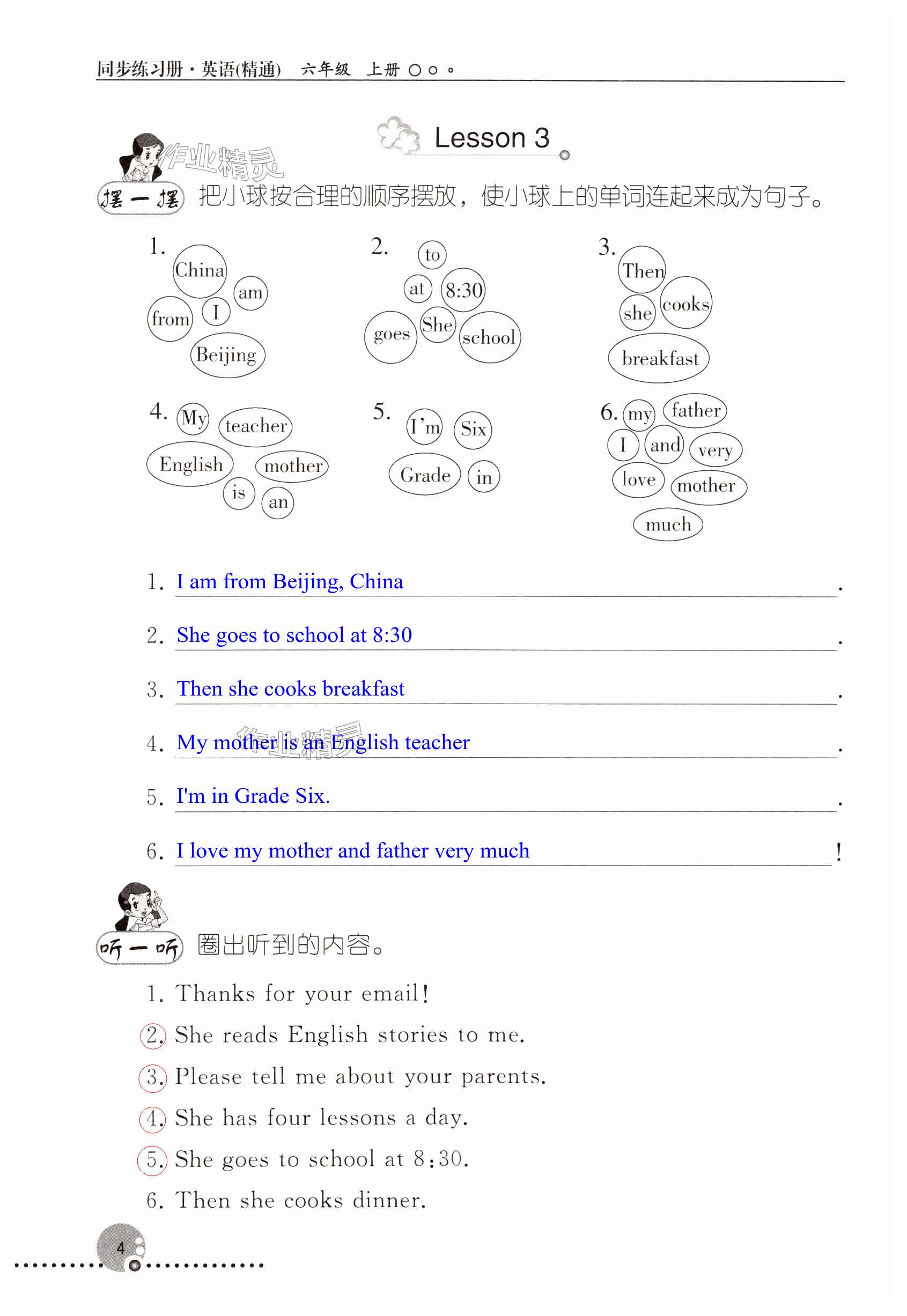 2023年同步练习册六年级英语上册人教精通版新疆用人民教育出版社
