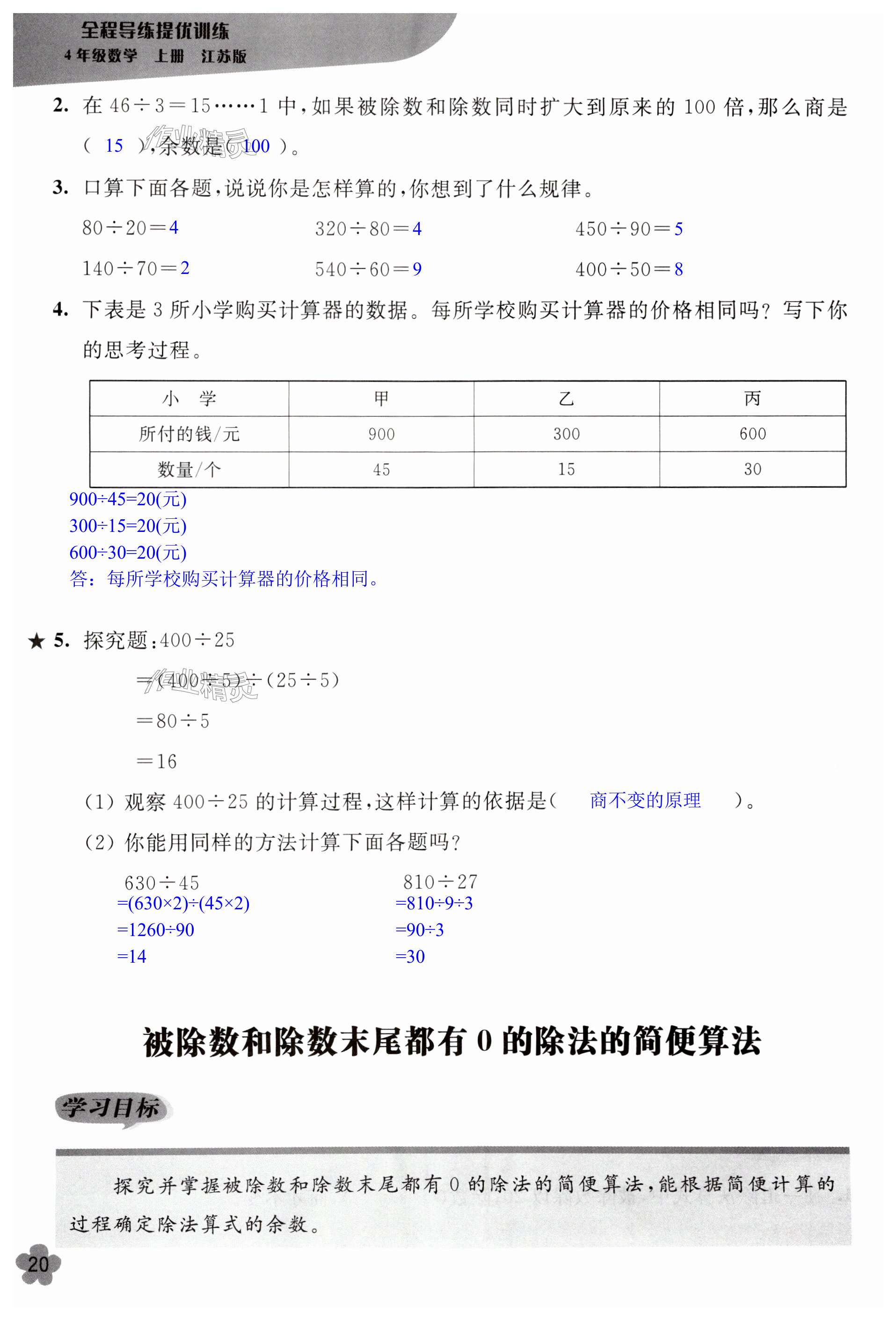 注:目前有些书本章节名称可能整理的还不是很完善,但都是按照顺序排列的,请同学们按照顺序仔细查找。练习册 2023年全程导练提优训练四年级数学上册苏教版 答案主要是用来给同学们做完题方便对答案用的,请勿直接抄袭。