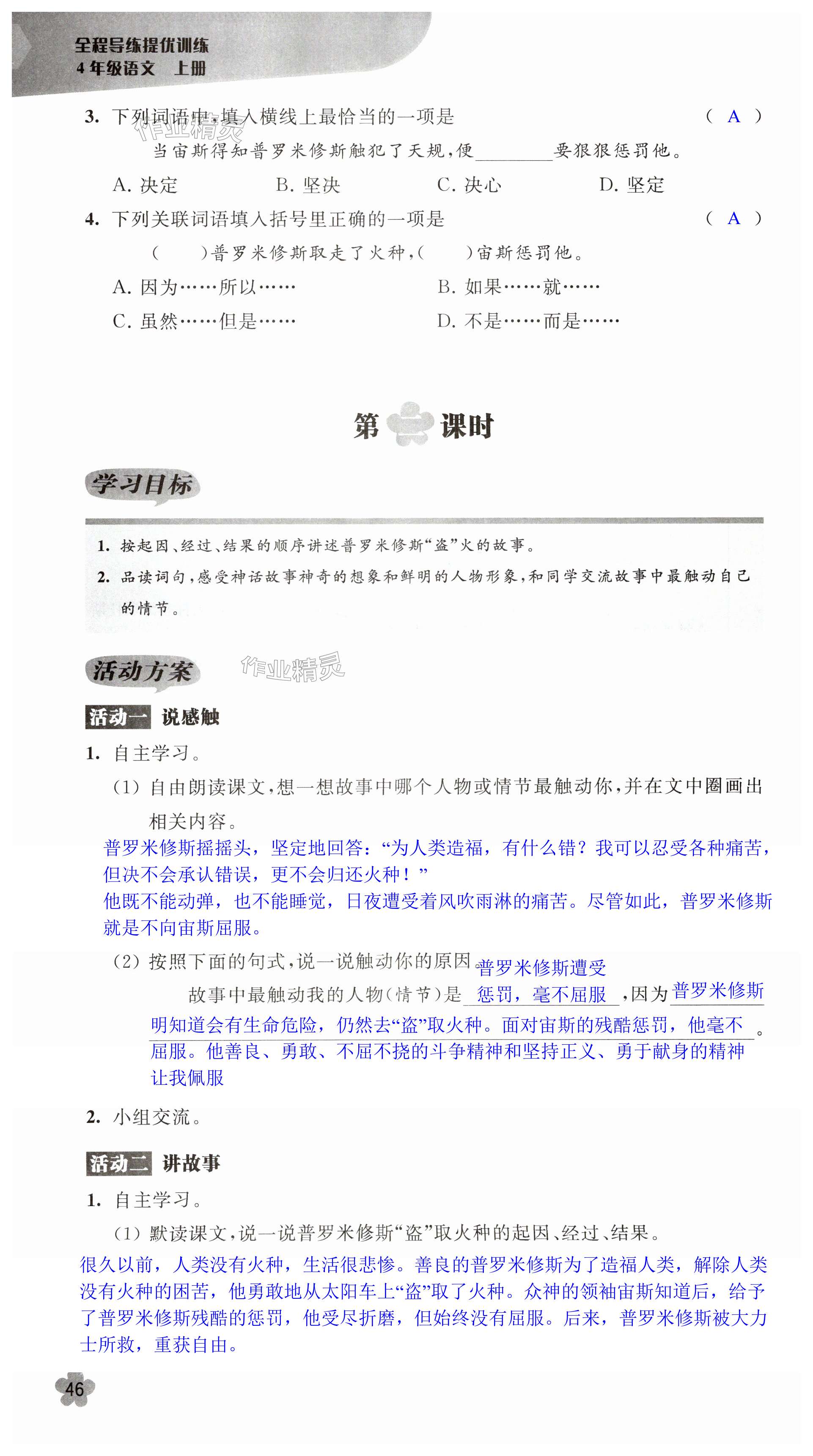 注:目前有些书本章节名称可能整理的还不是很完善,但都是按照顺序排列的,请同学们按照顺序仔细查找。练习册 2023年全程导练提优训练四年级语文上册人教版 答案主要是用来给同学们做完题方便对答案用的,请勿直接抄袭。