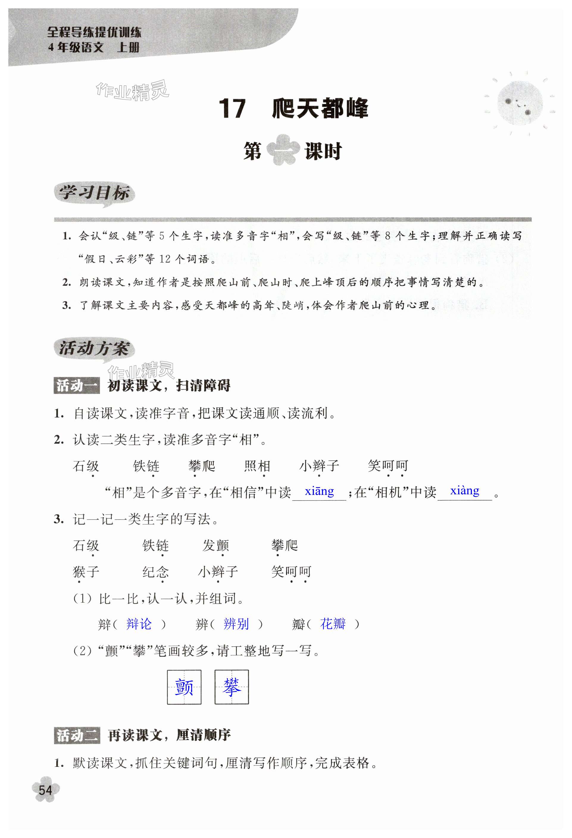 注:目前有些书本章节名称可能整理的还不是很完善,但都是按照顺序排列的,请同学们按照顺序仔细查找。练习册 2023年全程导练提优训练四年级语文上册人教版 答案主要是用来给同学们做完题方便对答案用的,请勿直接抄袭。