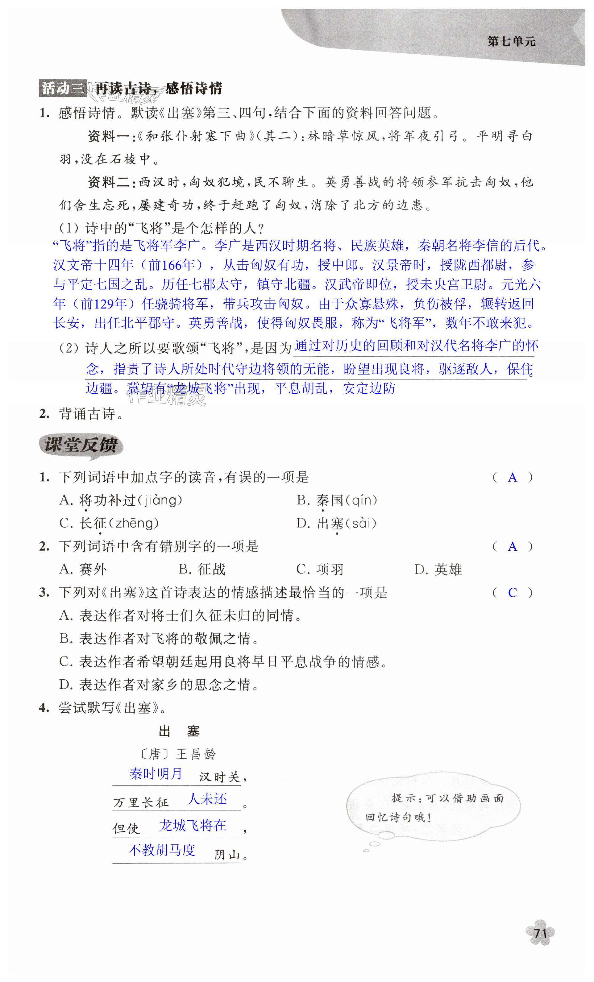注:目前有些书本章节名称可能整理的还不是很完善,但都是按照顺序排列的,请同学们按照顺序仔细查找。练习册 2023年全程导练提优训练四年级语文上册人教版 答案主要是用来给同学们做完题方便对答案用的,请勿直接抄袭。