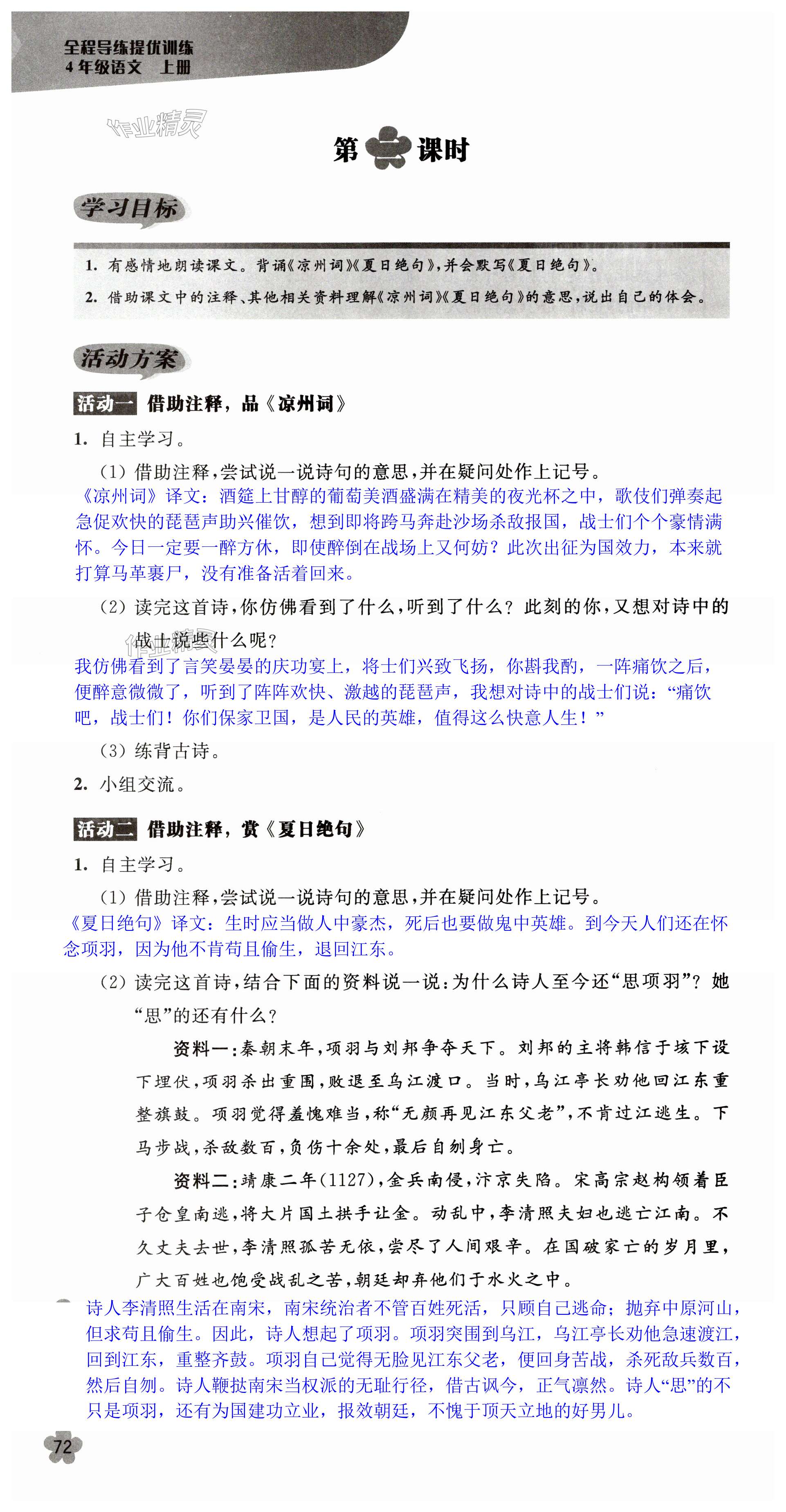 注:目前有些书本章节名称可能整理的还不是很完善,但都是按照顺序排列的,请同学们按照顺序仔细查找。练习册 2023年全程导练提优训练四年级语文上册人教版 答案主要是用来给同学们做完题方便对答案用的,请勿直接抄袭。