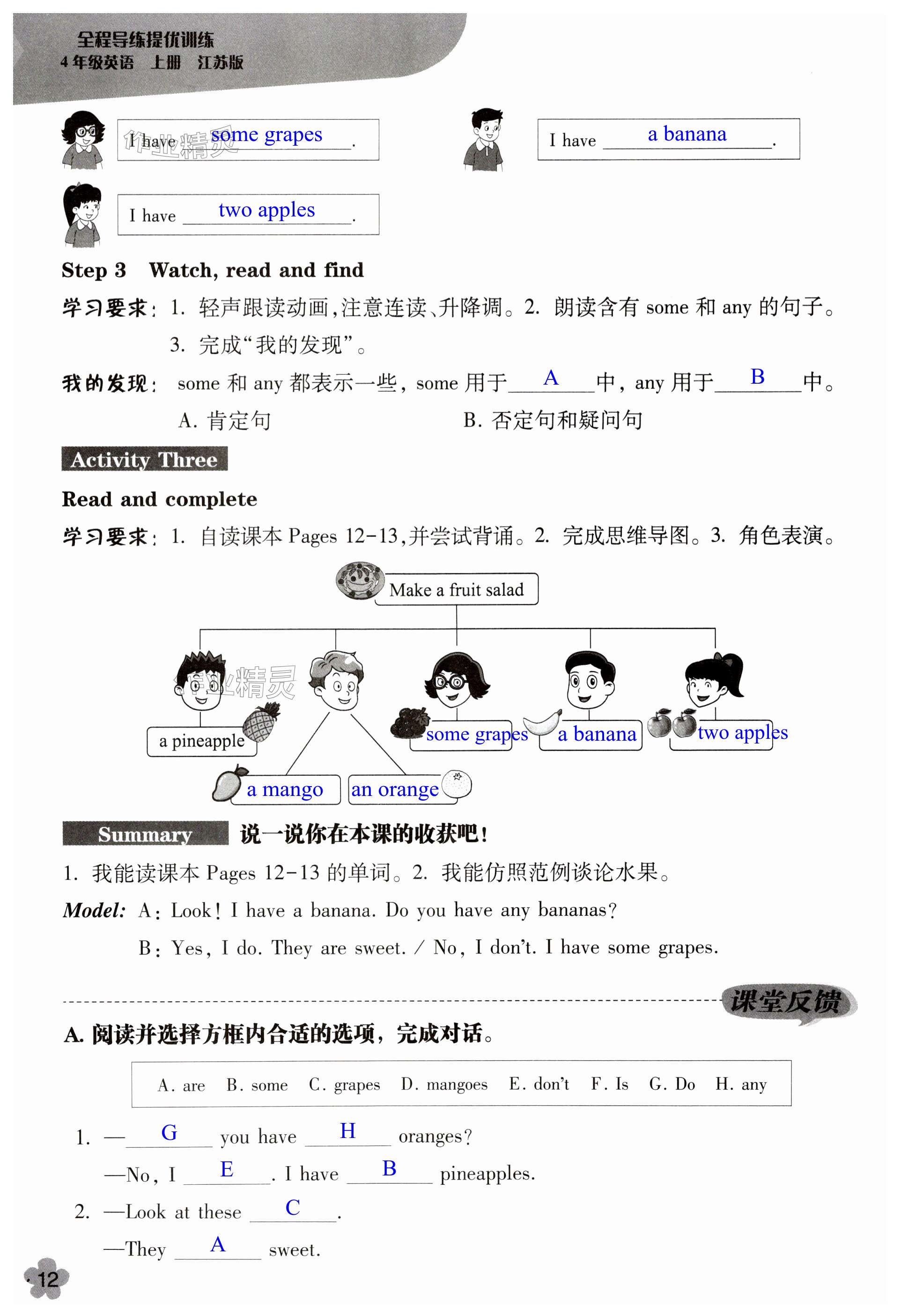 注:目前有些书本章节名称可能整理的还不是很完善,但都是按照顺序排列的,请同学们按照顺序仔细查找。练习册 2023年全程导练提优训练四年级英语上册译林版 答案主要是用来给同学们做完题方便对答案用的,请勿直接抄袭。
