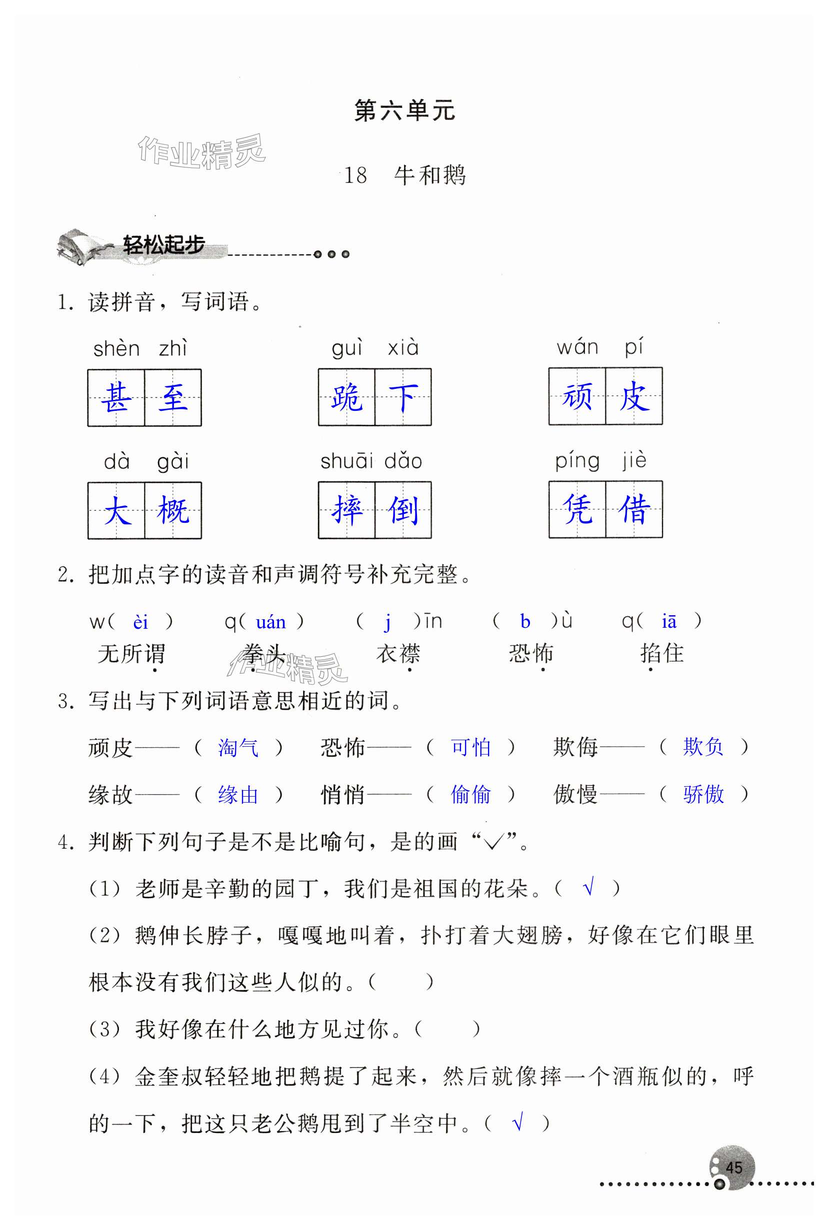 注:目前有些书本章节名称可能整理的还不是很完善,但都是按照顺序排列的,请同学们按照顺序仔细查找。练习册 2023年同步练习册四年级语文上册人教版人民教育出版社新疆专版 答案主要是用来给同学们做完题方便对答案用的,请勿直接抄袭。