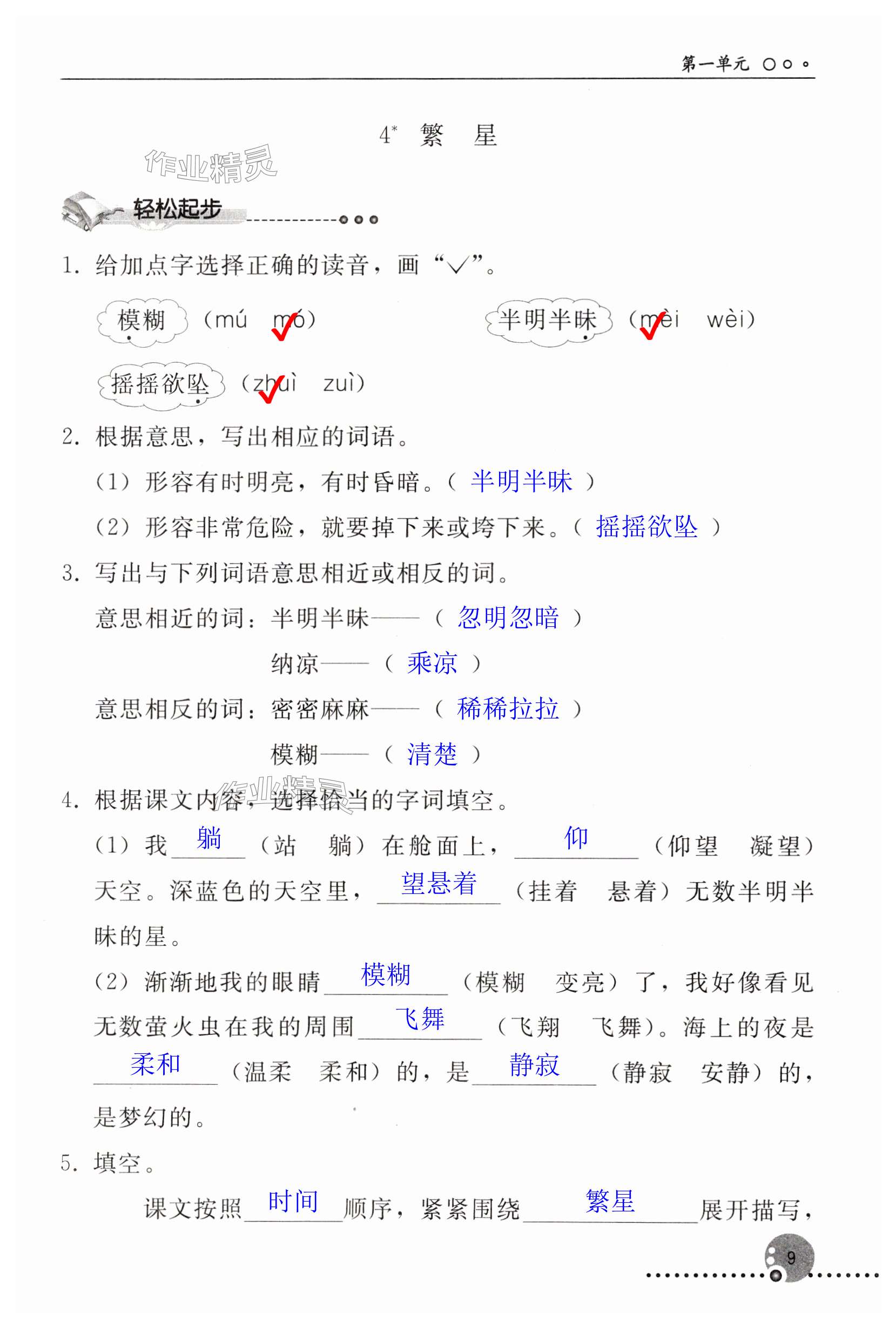 注:目前有些书本章节名称可能整理的还不是很完善,但都是按照顺序排列的,请同学们按照顺序仔细查找。练习册 2023年同步练习册四年级语文上册人教版人民教育出版社新疆专版 答案主要是用来给同学们做完题方便对答案用的,请勿直接抄袭。